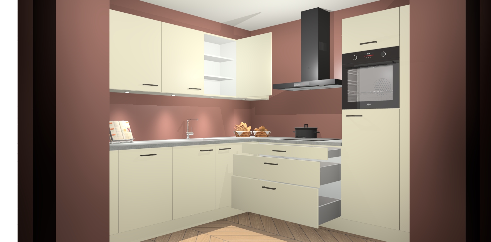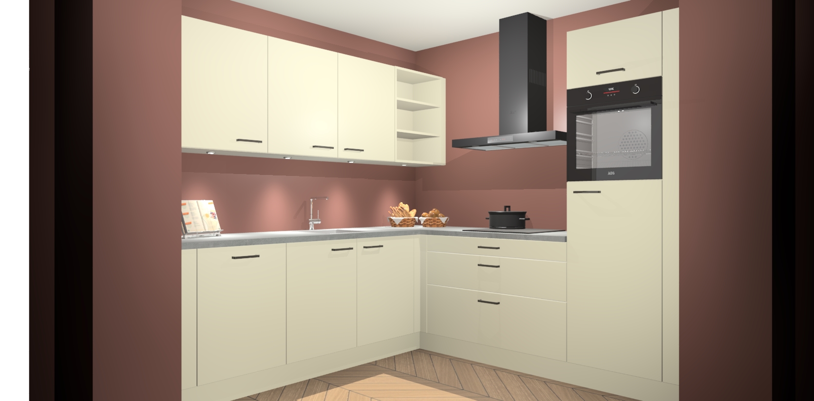 Met een modern, tijdloos design en ruime opslagruimte, zult u zich in no-time thuis voelen in uw nieuwe keuken. Uw leven wordt eenvoudiger met de soft-close deuren die voor het ultieme stille comfort zorgen - geen geluid dat u stoort terwijl u kookt. Ook is de keuken voorzien van 5 ingebouwde apparaten: een oven, inductie kookplaat, afzuigkap, vaatwasser en koelkast. Deze kunnen gemakkelijk na bestelling worden bijgewerkt naar AEG - waardoor uw luxe ervaring compleet is.