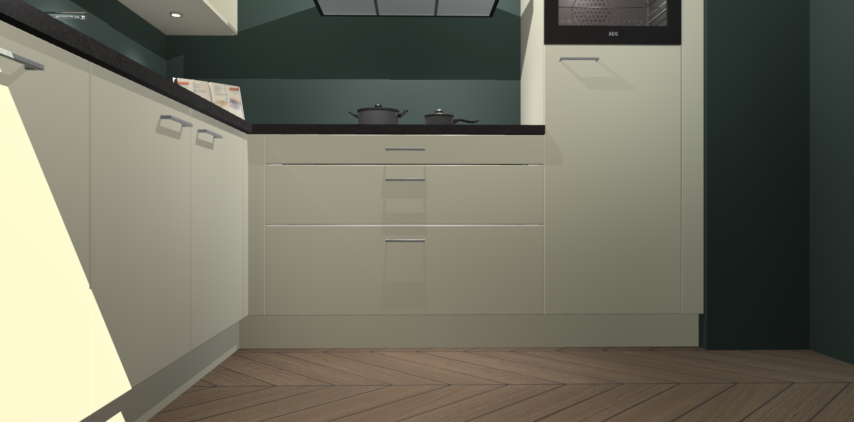 Met een modern, tijdloos design en ruime opslagruimte, zult u zich in no-time thuis voelen in uw nieuwe keuken. Uw leven wordt eenvoudiger met de soft-close deuren die voor het ultieme stille comfort zorgen - geen geluid dat u stoort terwijl u kookt. Ook is de keuken voorzien van 5 ingebouwde apparaten: een oven, inductie kookplaat, afzuigkap, vaatwasser en koelkast. Deze kunnen gemakkelijk na bestelling worden bijgewerkt naar AEG - waardoor uw luxe ervaring compleet is.