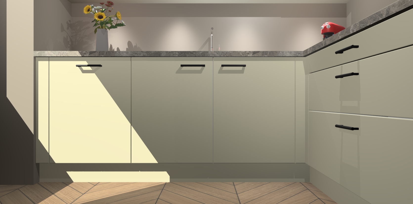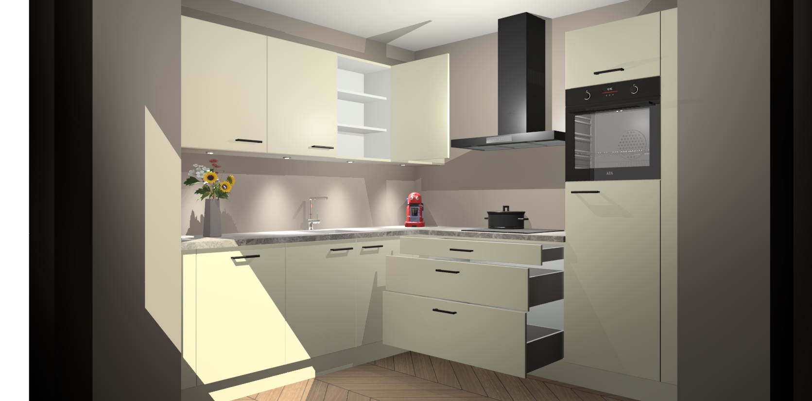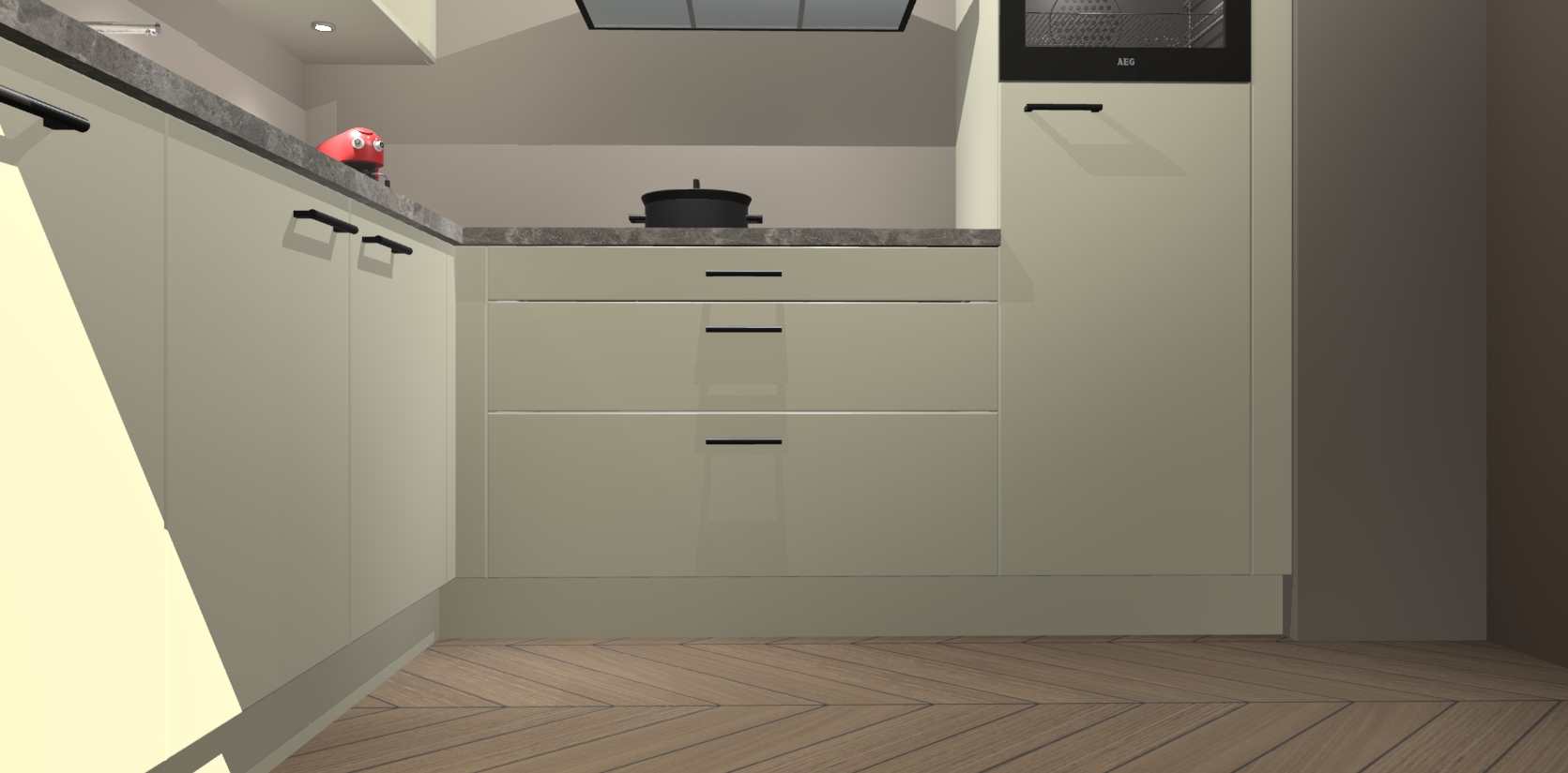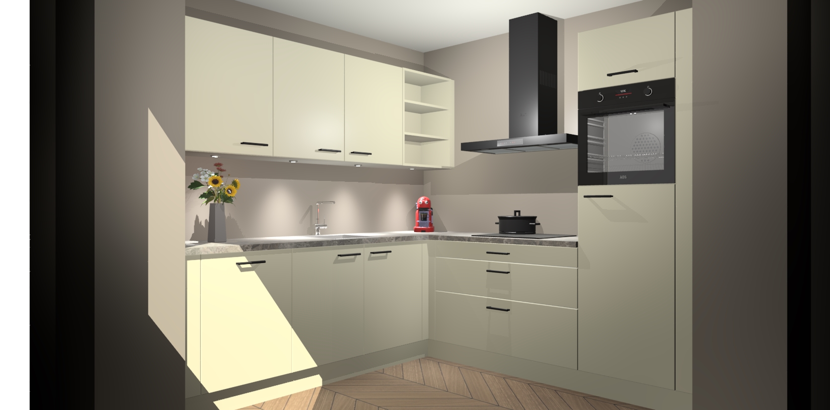 Met een modern, tijdloos design en ruime opslagruimte, zult u zich in no-time thuis voelen in uw nieuwe keuken. Uw leven wordt eenvoudiger met de soft-close deuren die voor het ultieme stille comfort zorgen - geen geluid dat u stoort terwijl u kookt. Ook is de keuken voorzien van 5 ingebouwde apparaten: een oven, inductie kookplaat, afzuigkap, vaatwasser en koelkast. Deze kunnen gemakkelijk na bestelling worden bijgewerkt naar AEG - waardoor uw luxe ervaring compleet is.