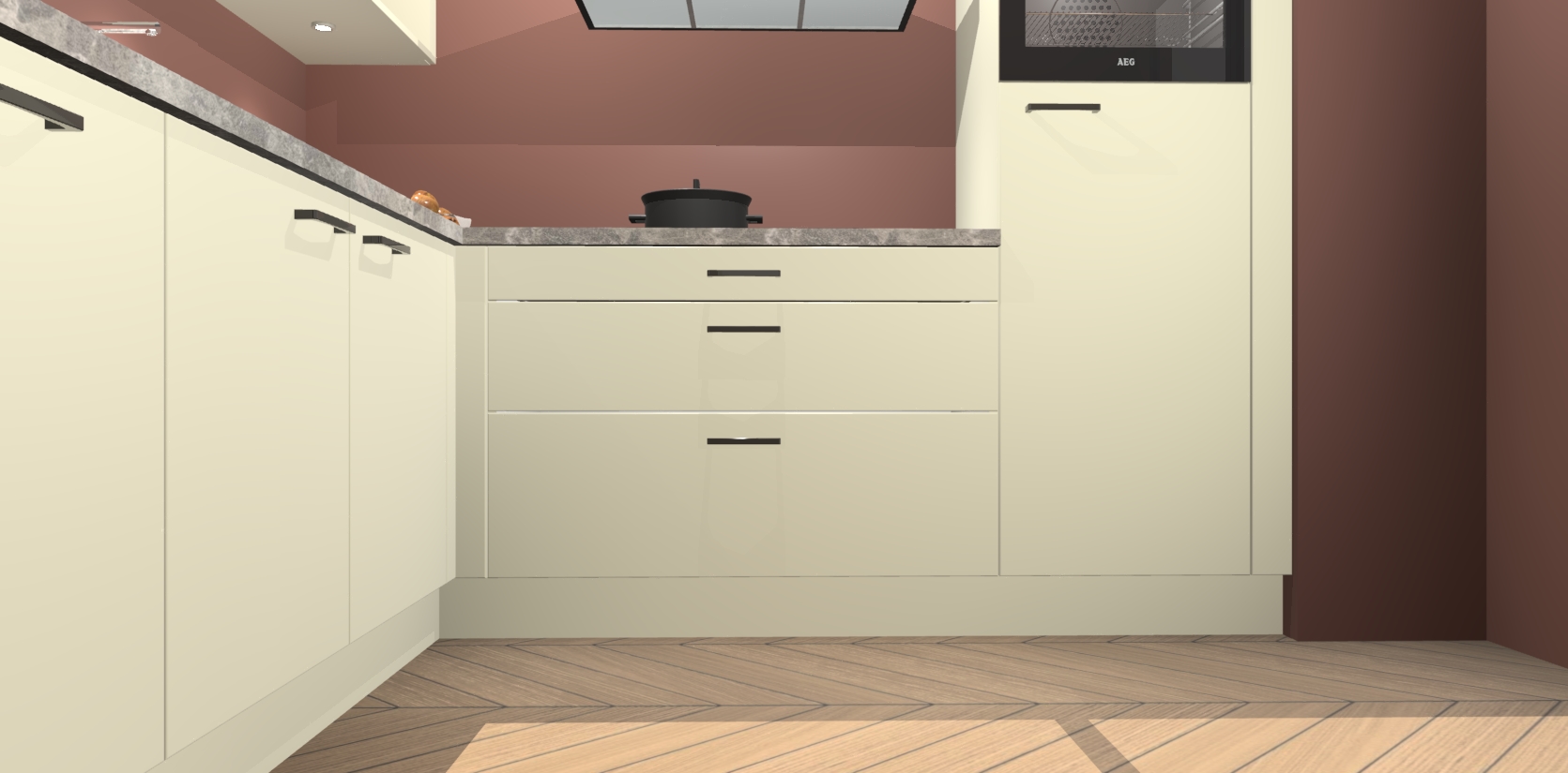 Met een modern, tijdloos design en ruime opslagruimte, zult u zich in no-time thuis voelen in uw nieuwe keuken. Uw leven wordt eenvoudiger met de soft-close deuren die voor het ultieme stille comfort zorgen - geen geluid dat u stoort terwijl u kookt. Ook is de keuken voorzien van 5 ingebouwde apparaten: een oven, inductie kookplaat, afzuigkap, vaatwasser en koelkast. Deze kunnen gemakkelijk na bestelling worden bijgewerkt naar AEG - waardoor uw luxe ervaring compleet is.