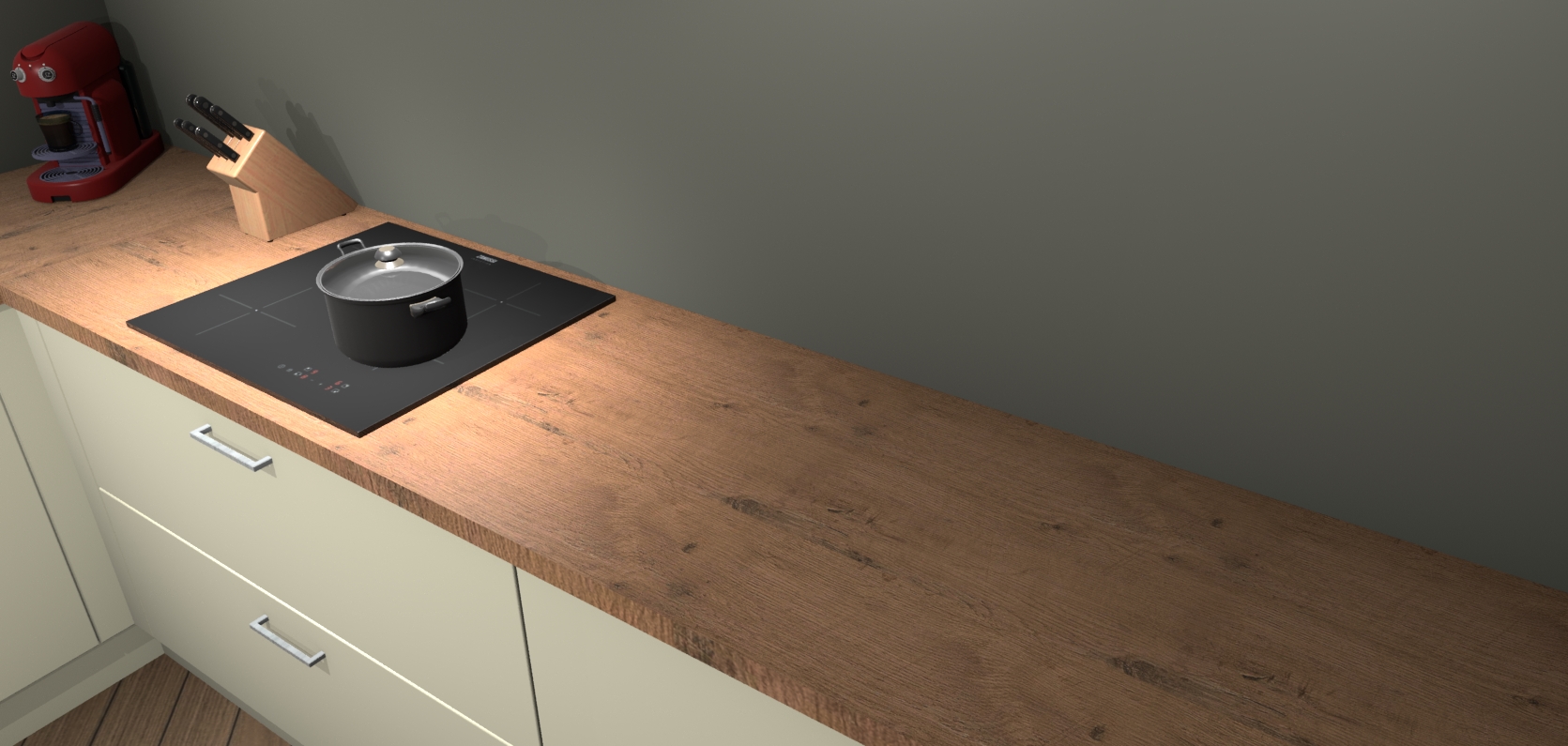 - Bij een hoekwerkblad zijn de hoeken in gevreesd en op maat gemaakt