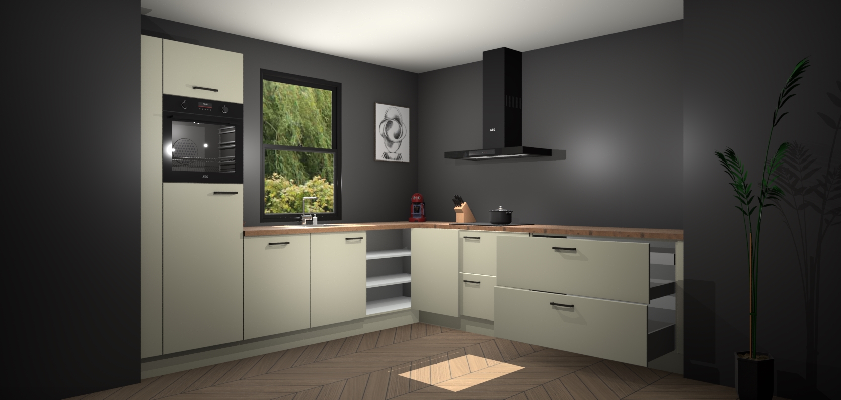 Inclusief plinten, stelpoten en werkblad