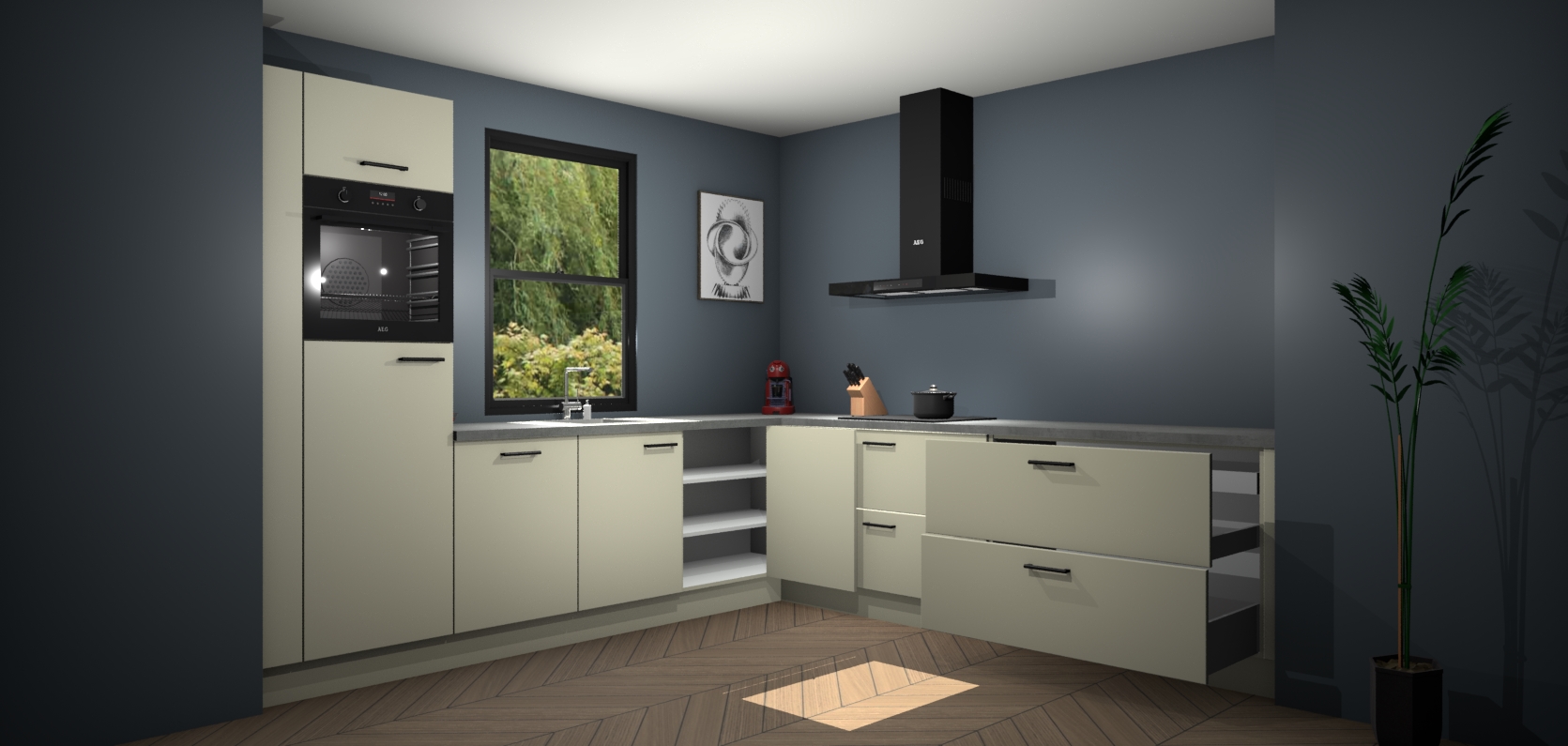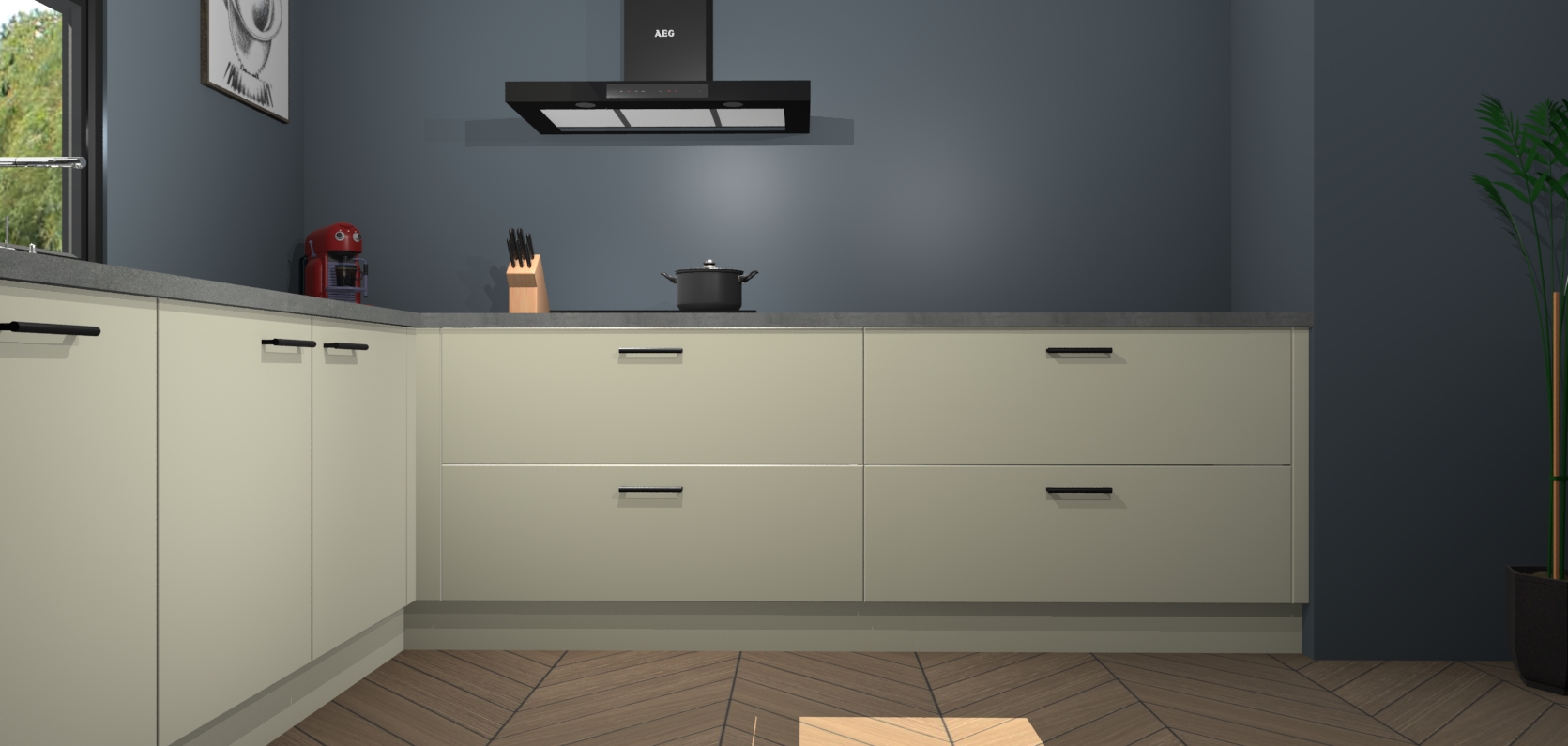 Inclusief plinten, stelpoten en werkblad