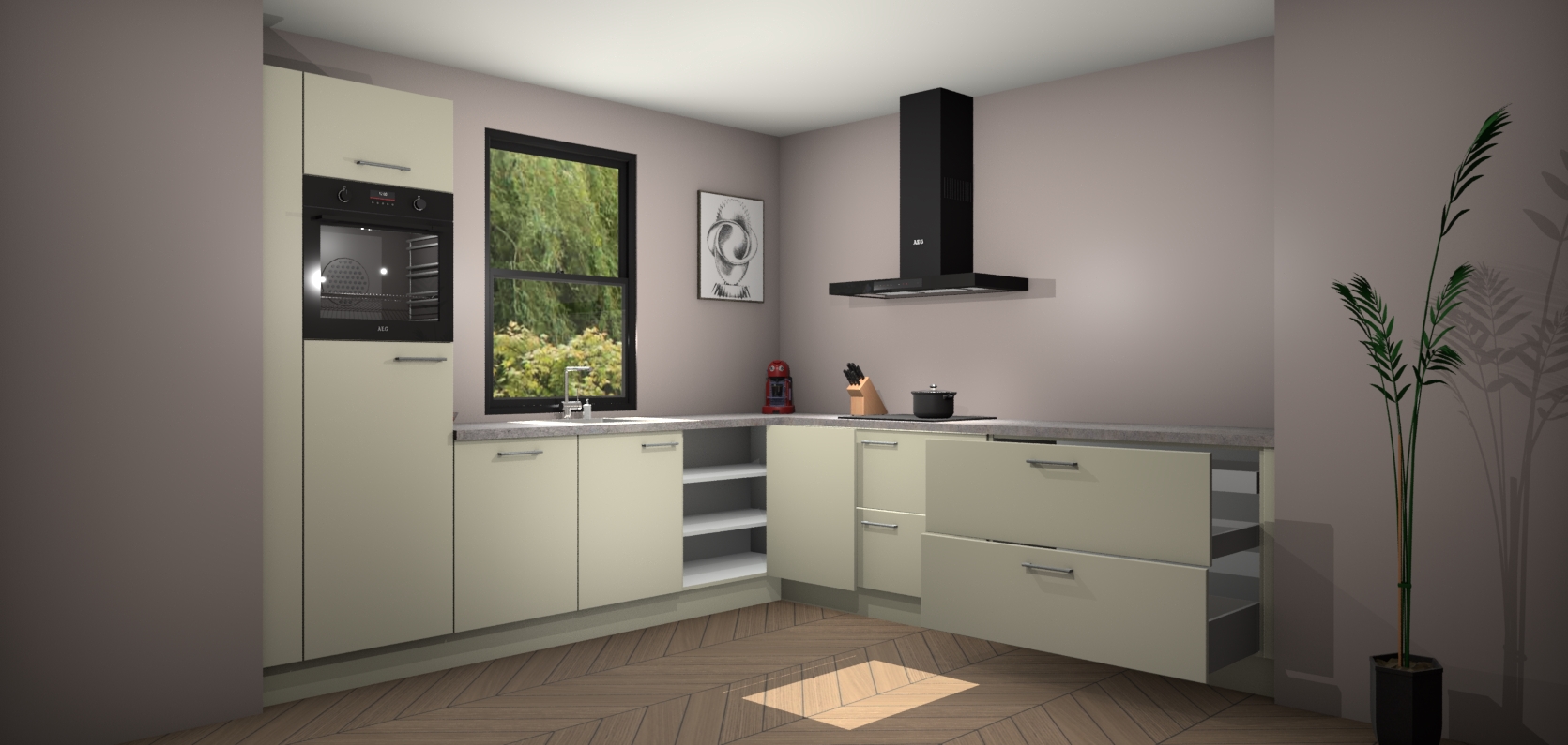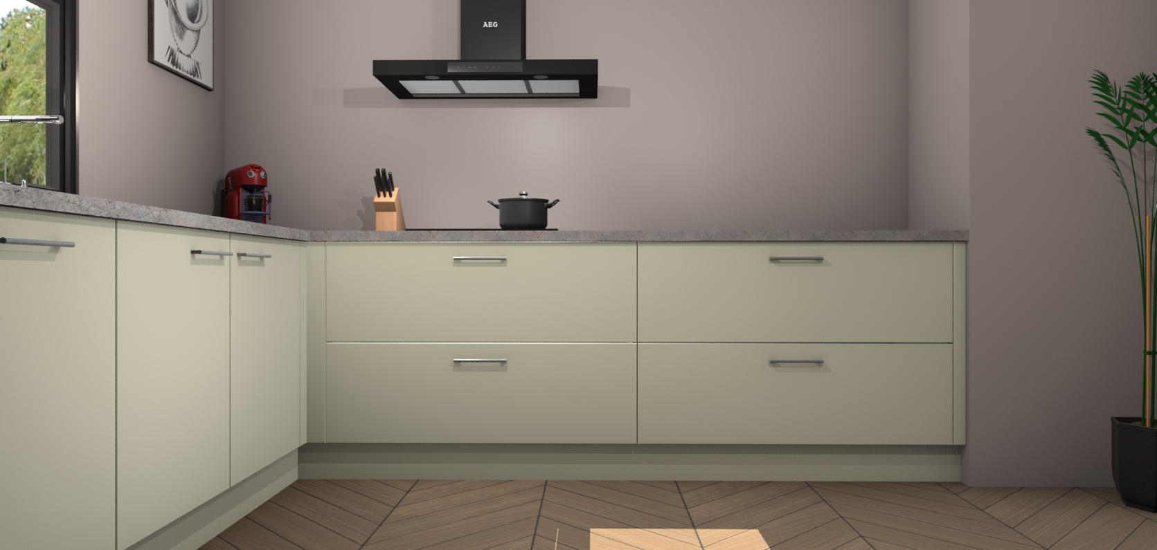 Inclusief plinten, stelpoten en werkblad