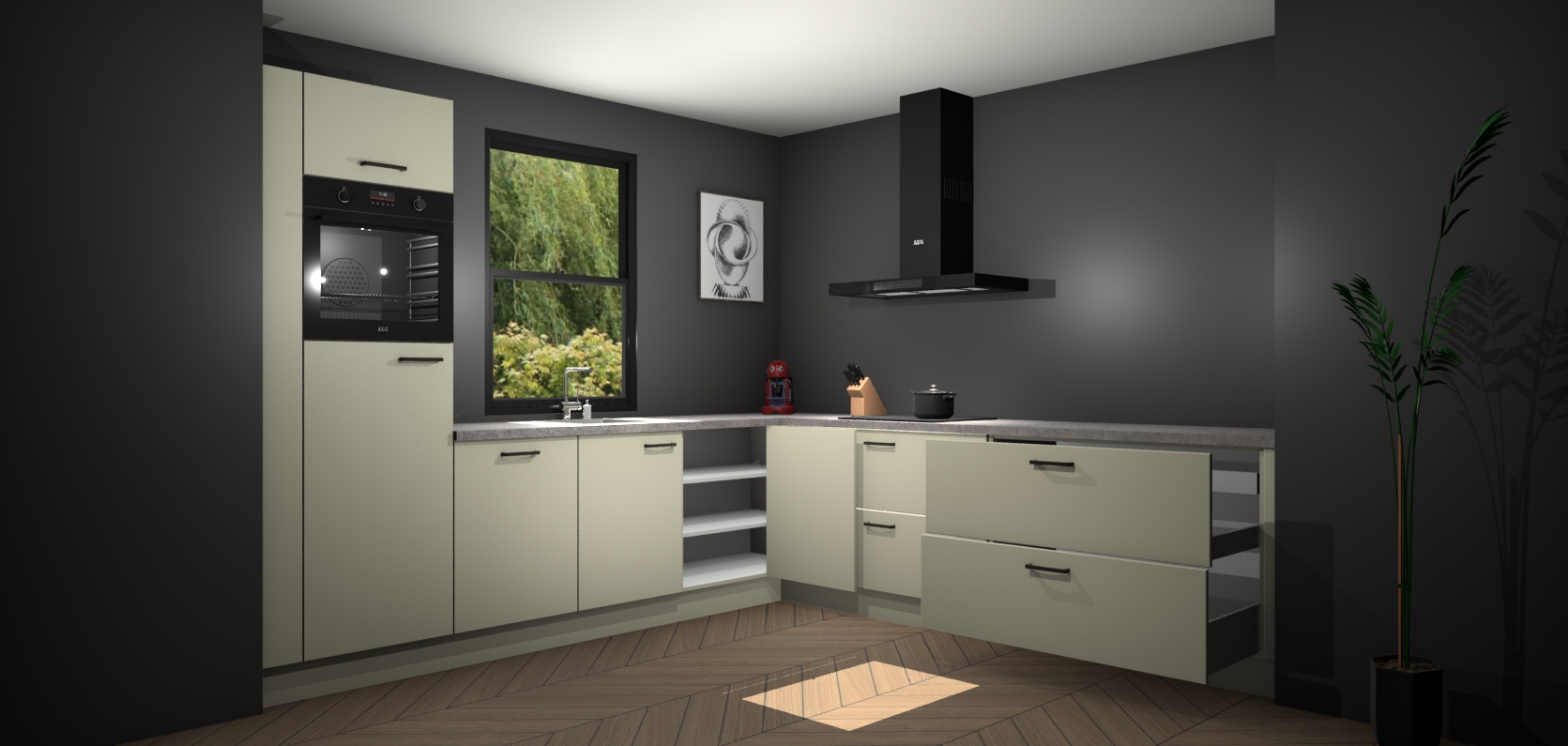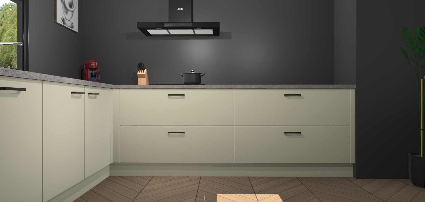 Inclusief plinten, stelpoten en werkblad