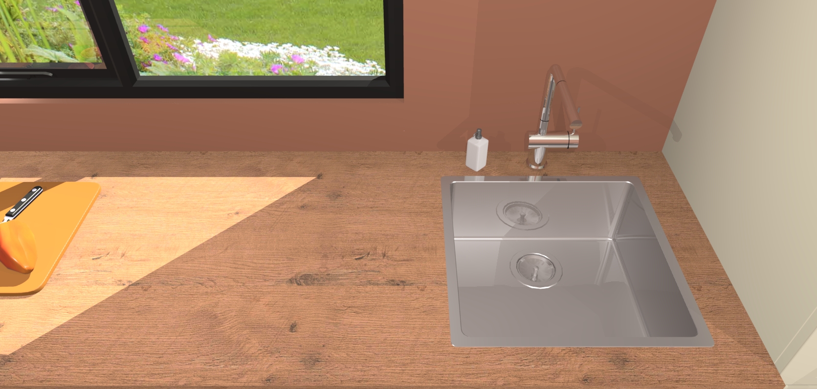 - De spoelbak is nog niet in gevreesd. Dit dient tijdens het werk gedaan te worden
