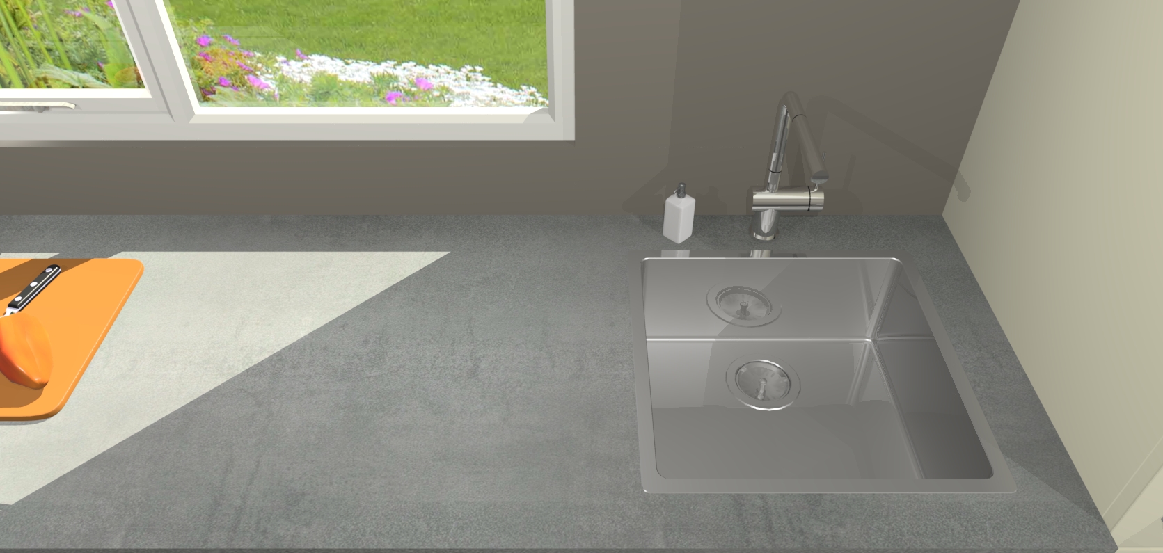 • De spoelbak is nog niet in gevreesd. Dit dient tijdens het werk gedaan te worden