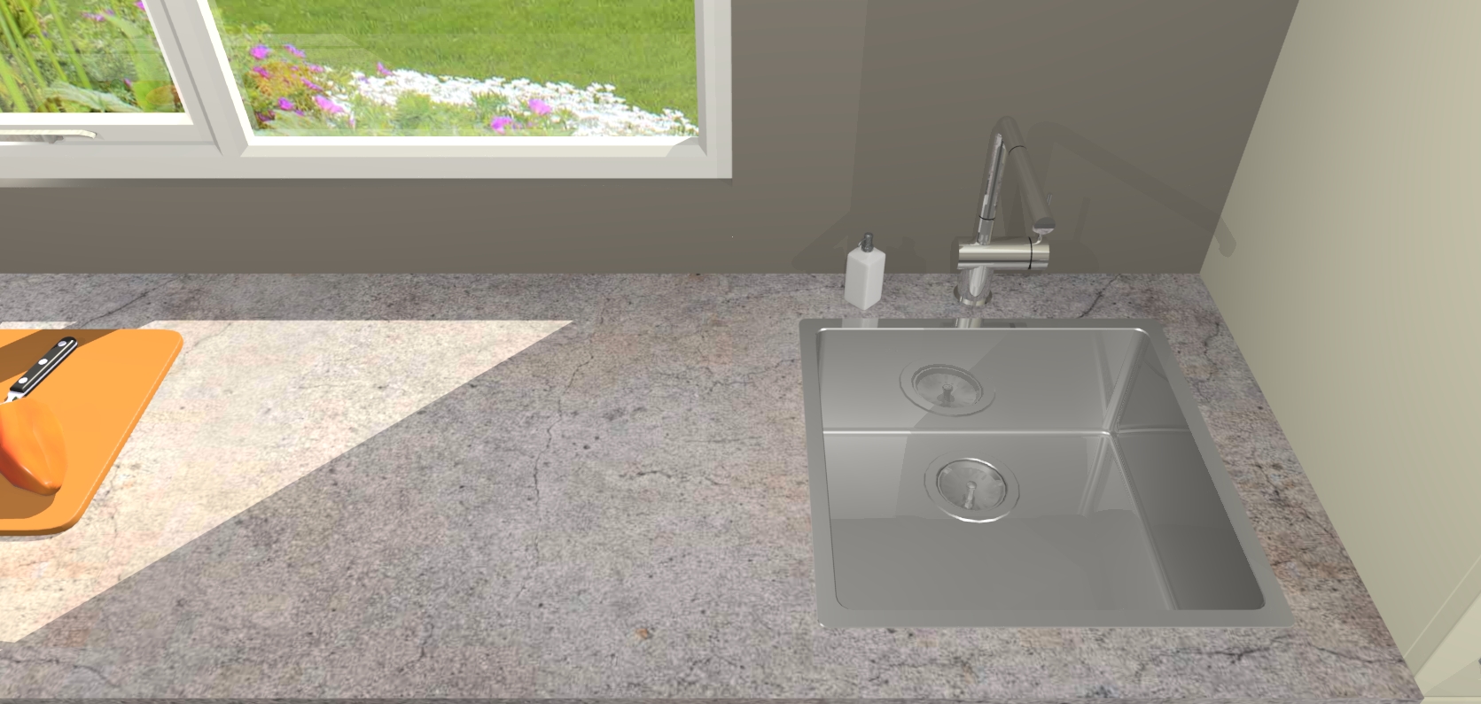 - De spoelbak is nog niet in gevreesd. Dit dient tijdens het werk gedaan te worden