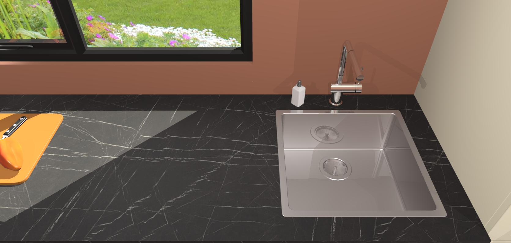 - De spoelbak is nog niet in gevreesd. Dit dient tijdens het werk gedaan te worden