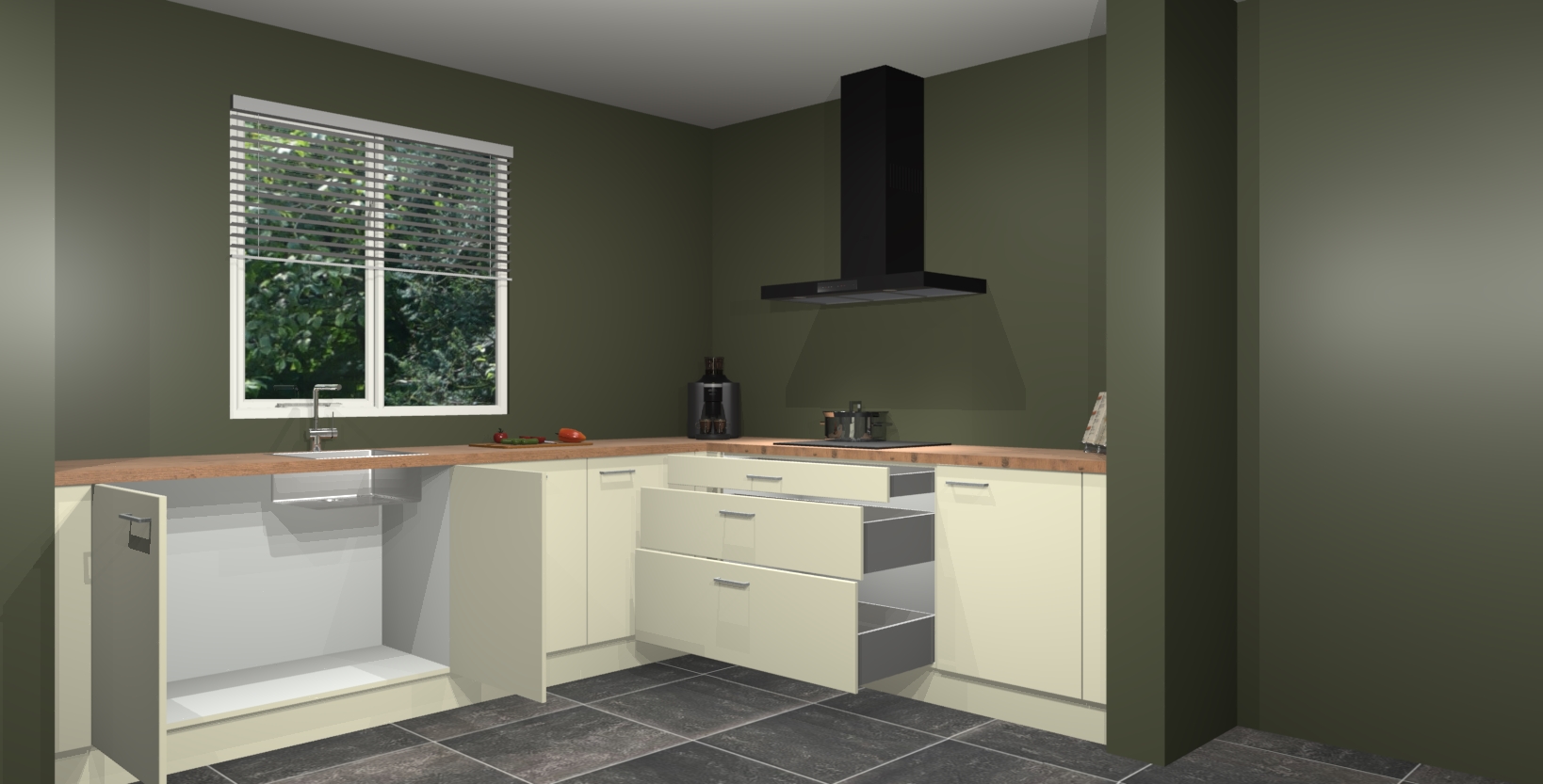 In deze box zijn alle kleuren verzameld van de deuren en werkbladen. Vraag de gratis kleurenbox aan en kijk thuis rustig verder!