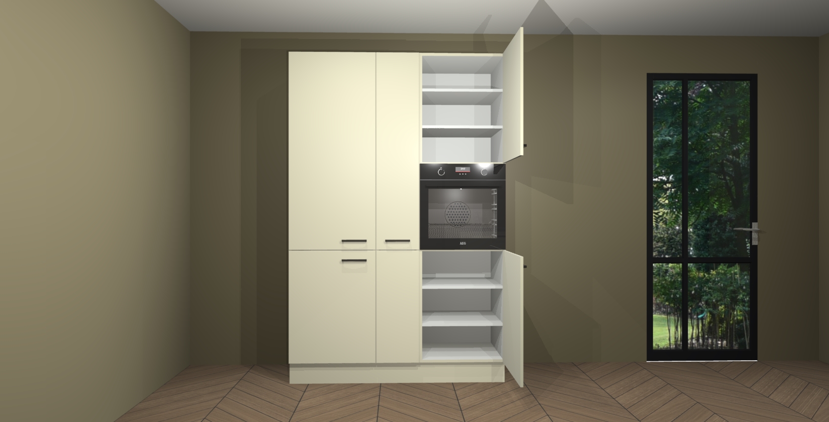 Met een modern, tijdloos design en ruime opslagruimte, zult u zich in no-time thuis voelen in uw nieuwe keuken. Uw leven wordt eenvoudiger met de soft-close deuren die voor het ultieme stille comfort zorgen - geen geluid dat u stoort terwijl u kookt. Ook is de keuken voorzien van 5 ingebouwde apparaten: een oven, inductie kookplaat, afzuigkap, vaatwasser en koelkast. Deze kunnen gemakkelijk na bestelling worden bijgewerkt naar AEG - waardoor uw luxe ervaring compleet is.