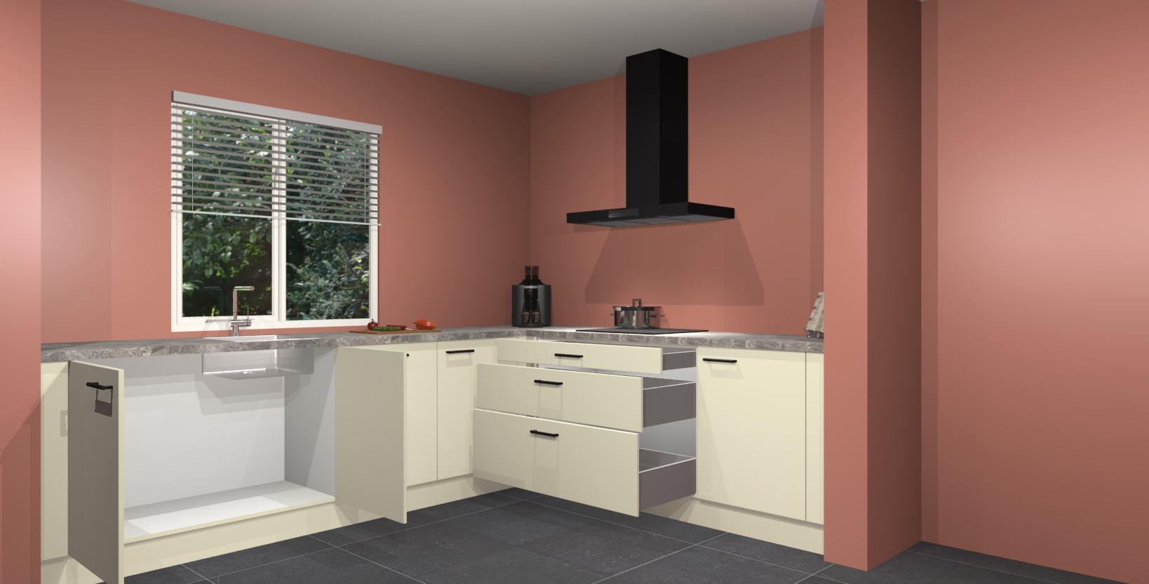 - Bij een hoekwerkblad zijn de hoeken in gevreesd en op maat gemaakt