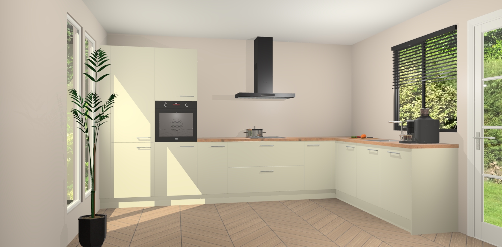 Met een modern, tijdloos design en ruime opslagruimte, zult u zich in no-time thuis voelen in uw nieuwe keuken. Uw leven wordt eenvoudiger met de soft-close deuren die voor het ultieme stille comfort zorgen - geen geluid dat u stoort terwijl u kookt. Ook is de keuken voorzien van 5 ingebouwde apparaten: een oven, inductie kookplaat, afzuigkap, vaatwasser en koelkast. Deze kunnen gemakkelijk na bestelling worden bijgewerkt naar AEG - waardoor uw luxe ervaring compleet is.