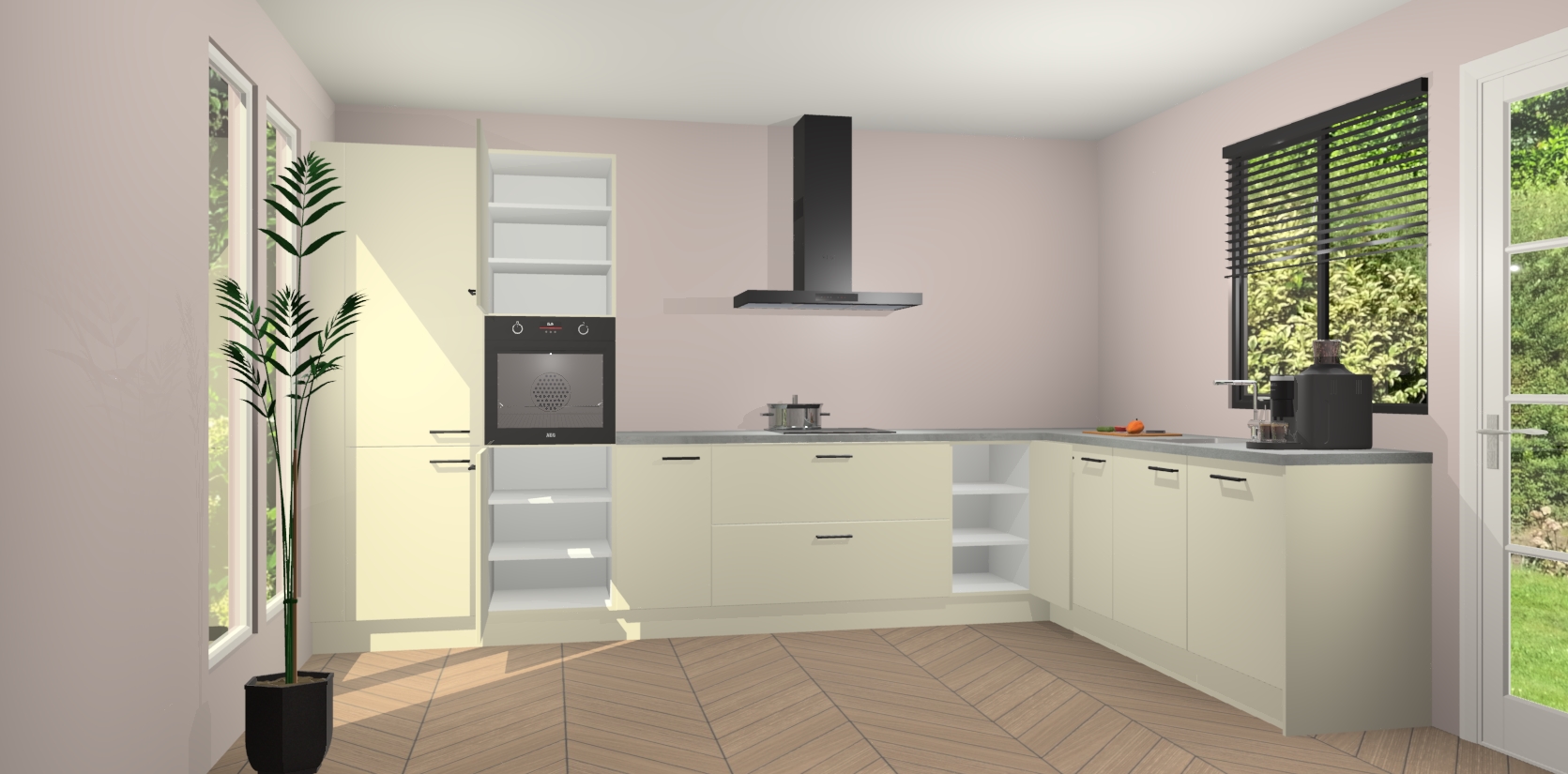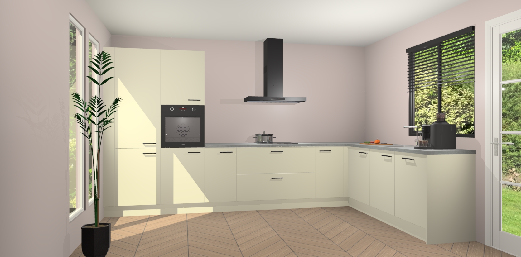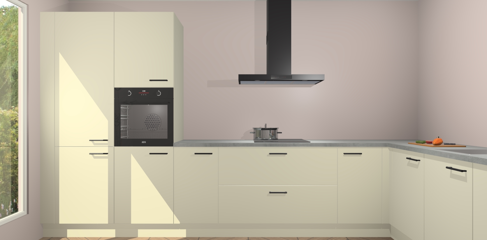 Met een modern, tijdloos design en ruime opslagruimte, zult u zich in no-time thuis voelen in uw nieuwe keuken. Uw leven wordt eenvoudiger met de soft-close deuren die voor het ultieme stille comfort zorgen - geen geluid dat u stoort terwijl u kookt. Ook is de keuken voorzien van 5 ingebouwde apparaten: een oven, inductie kookplaat, afzuigkap, vaatwasser en koelkast. Deze kunnen gemakkelijk na bestelling worden bijgewerkt naar AEG - waardoor uw luxe ervaring compleet is.