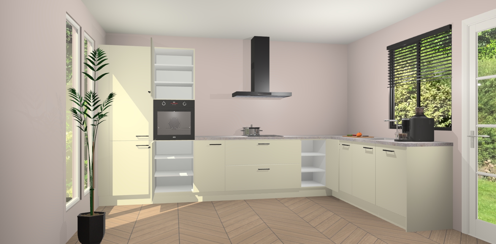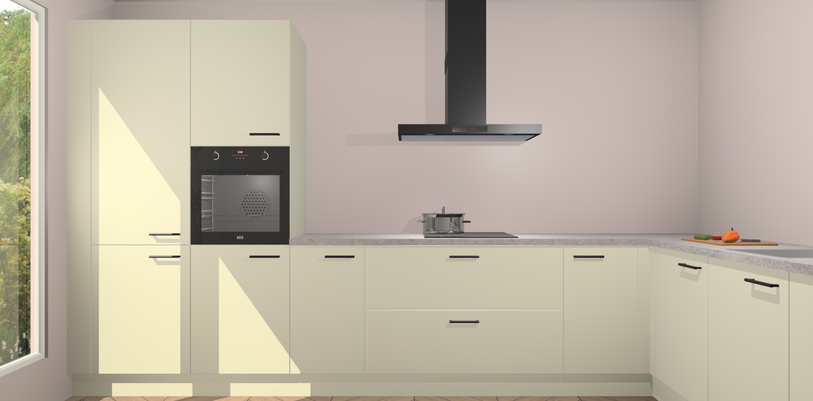 Met een modern, tijdloos design en ruime opslagruimte, zult u zich in no-time thuis voelen in uw nieuwe keuken. Uw leven wordt eenvoudiger met de soft-close deuren die voor het ultieme stille comfort zorgen - geen geluid dat u stoort terwijl u kookt. Ook is de keuken voorzien van 5 ingebouwde apparaten: een oven, inductie kookplaat, afzuigkap, vaatwasser en koelkast. Deze kunnen gemakkelijk na bestelling worden bijgewerkt naar AEG - waardoor uw luxe ervaring compleet is.