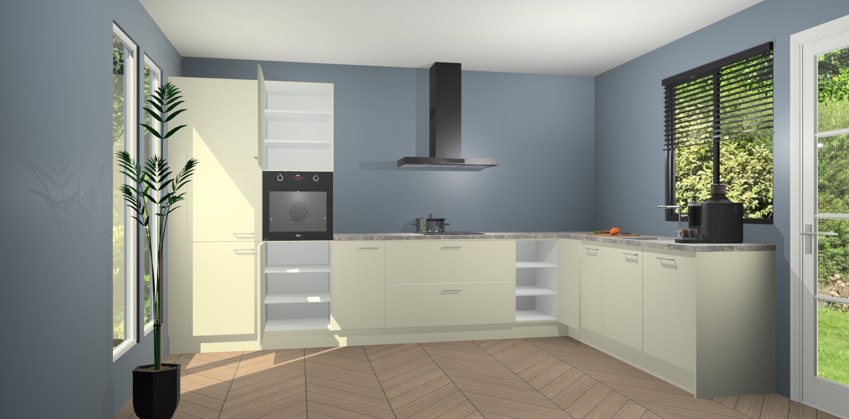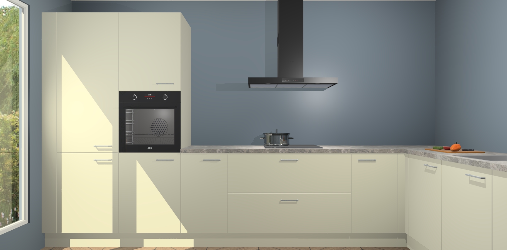Met een modern, tijdloos design en ruime opslagruimte, zult u zich in no-time thuis voelen in uw nieuwe keuken. Uw leven wordt eenvoudiger met de soft-close deuren die voor het ultieme stille comfort zorgen - geen geluid dat u stoort terwijl u kookt. Ook is de keuken voorzien van 5 ingebouwde apparaten: een oven, inductie kookplaat, afzuigkap, vaatwasser en koelkast. Deze kunnen gemakkelijk na bestelling worden bijgewerkt naar AEG - waardoor uw luxe ervaring compleet is.