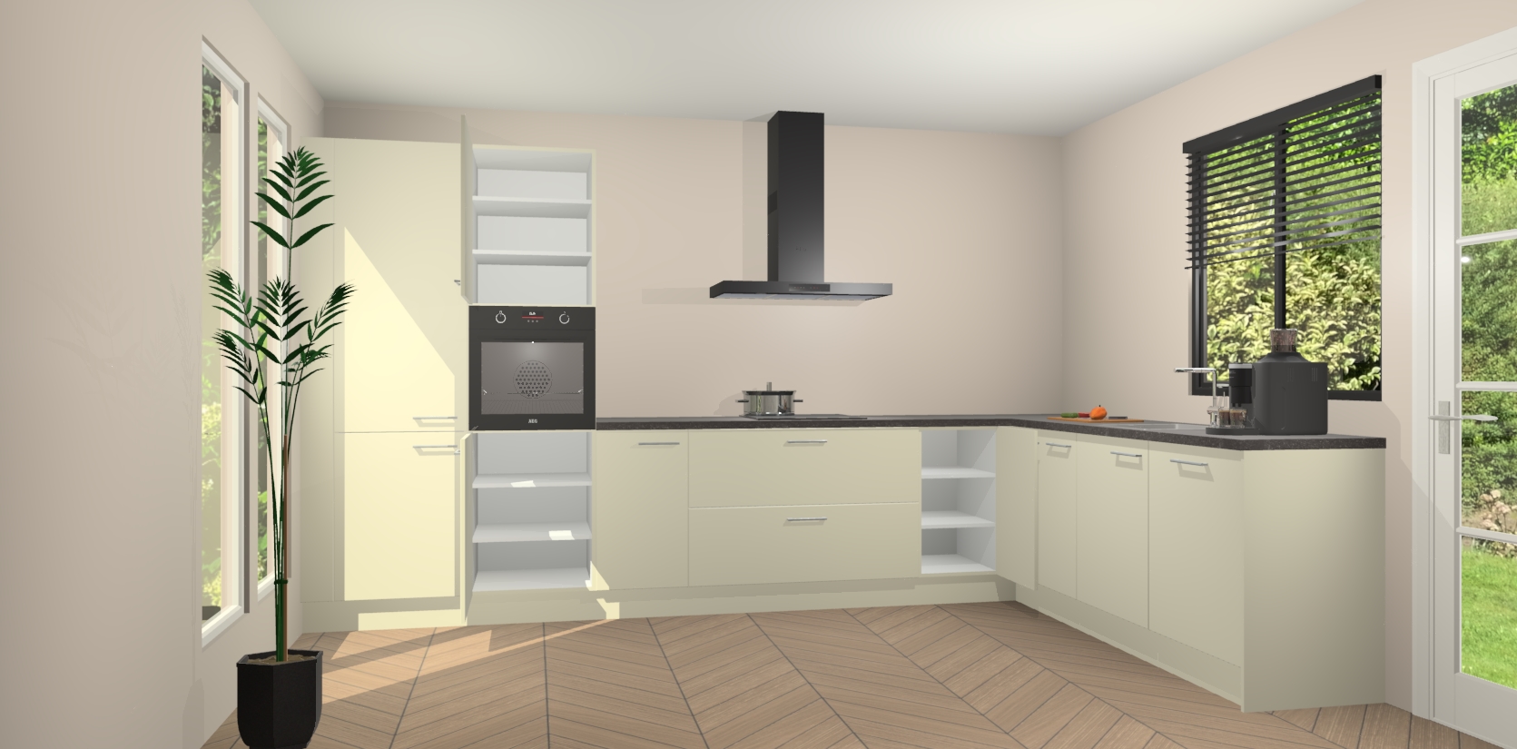 Inclusief plinten, stelpoten en werkblad