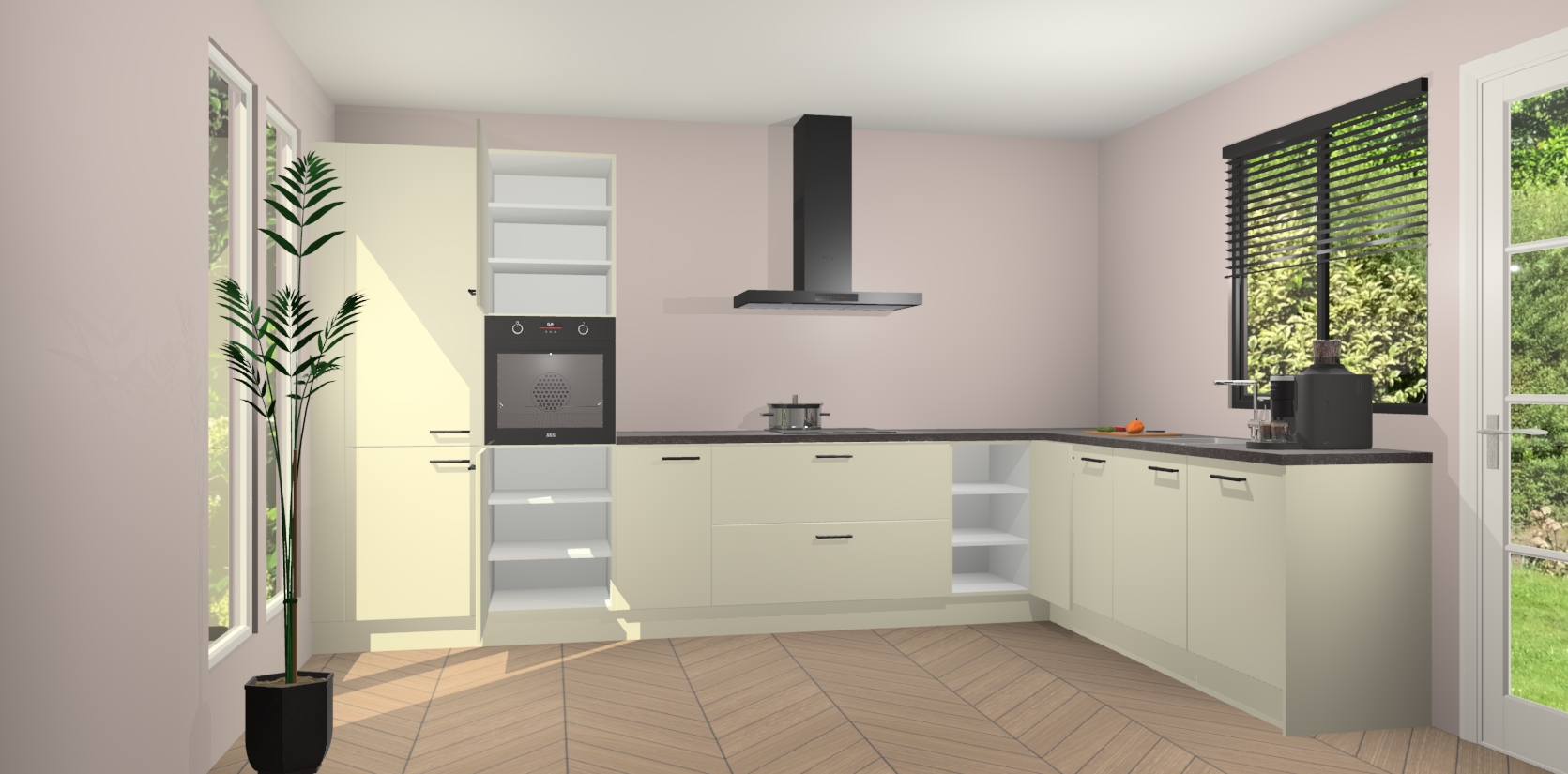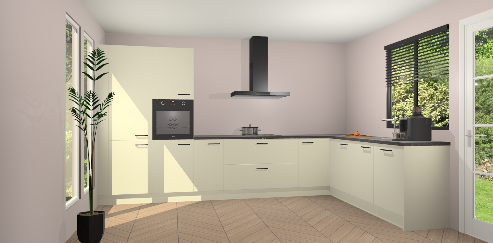 Met een modern, tijdloos design en ruime opslagruimte, zult u zich in no-time thuis voelen in uw nieuwe keuken. Uw leven wordt eenvoudiger met de soft-close deuren die voor het ultieme stille comfort zorgen - geen geluid dat u stoort terwijl u kookt. Ook is de keuken voorzien van 5 ingebouwde apparaten: een oven, inductie kookplaat, afzuigkap, vaatwasser en koelkast. Deze kunnen gemakkelijk na bestelling worden bijgewerkt naar AEG - waardoor uw luxe ervaring compleet is.