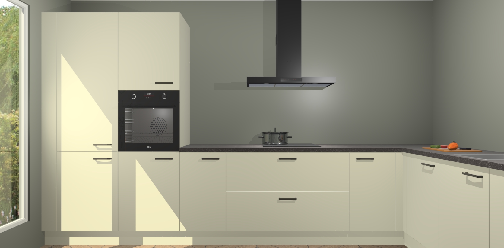 Met een modern, tijdloos design en ruime opslagruimte, zult u zich in no-time thuis voelen in uw nieuwe keuken. Uw leven wordt eenvoudiger met de soft-close deuren die voor het ultieme stille comfort zorgen - geen geluid dat u stoort terwijl u kookt. Ook is de keuken voorzien van 5 ingebouwde apparaten: een oven, inductie kookplaat, afzuigkap, vaatwasser en koelkast. Deze kunnen gemakkelijk na bestelling worden bijgewerkt naar AEG - waardoor uw luxe ervaring compleet is.