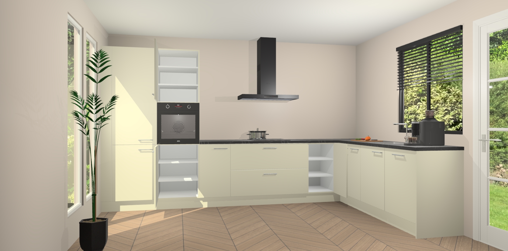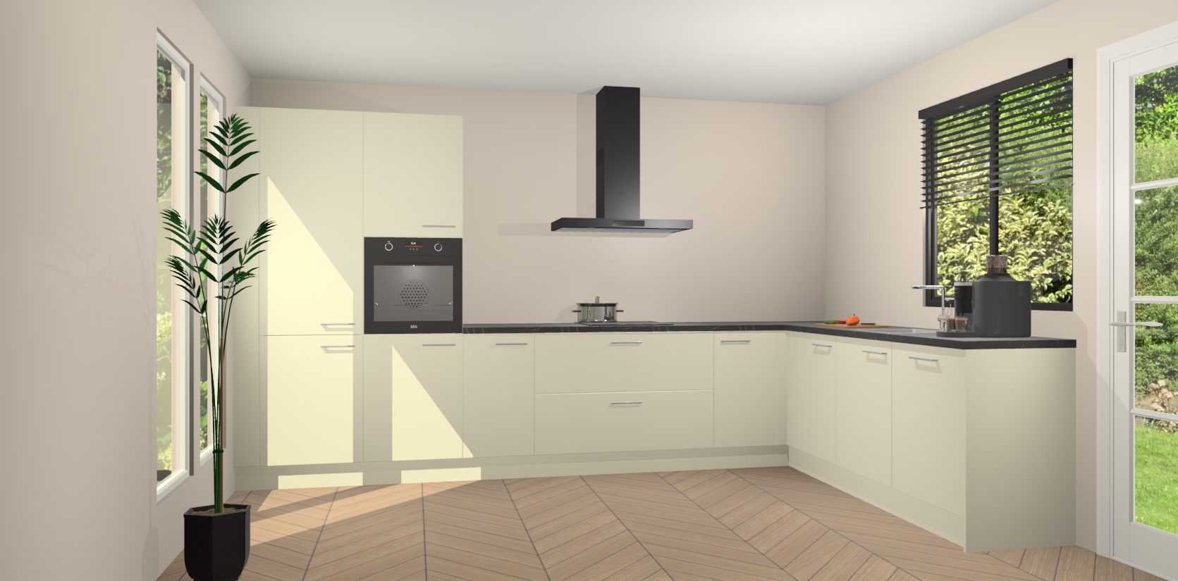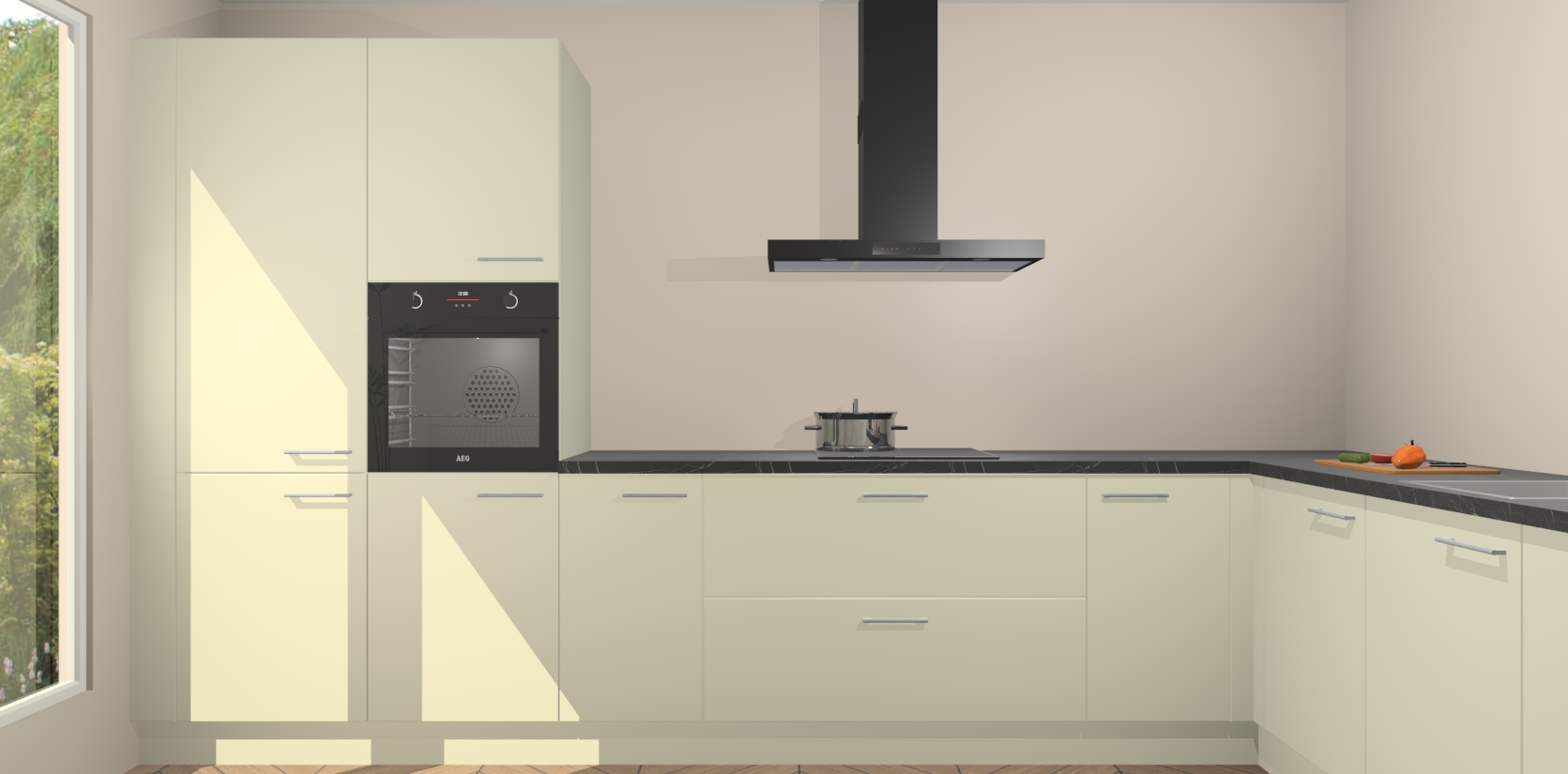 Met een modern, tijdloos design en ruime opslagruimte, zult u zich in no-time thuis voelen in uw nieuwe keuken. Uw leven wordt eenvoudiger met de soft-close deuren die voor het ultieme stille comfort zorgen - geen geluid dat u stoort terwijl u kookt. Ook is de keuken voorzien van 5 ingebouwde apparaten: een oven, inductie kookplaat, afzuigkap, vaatwasser en koelkast. Deze kunnen gemakkelijk na bestelling worden bijgewerkt naar AEG - waardoor uw luxe ervaring compleet is.