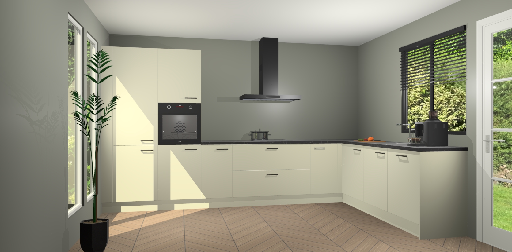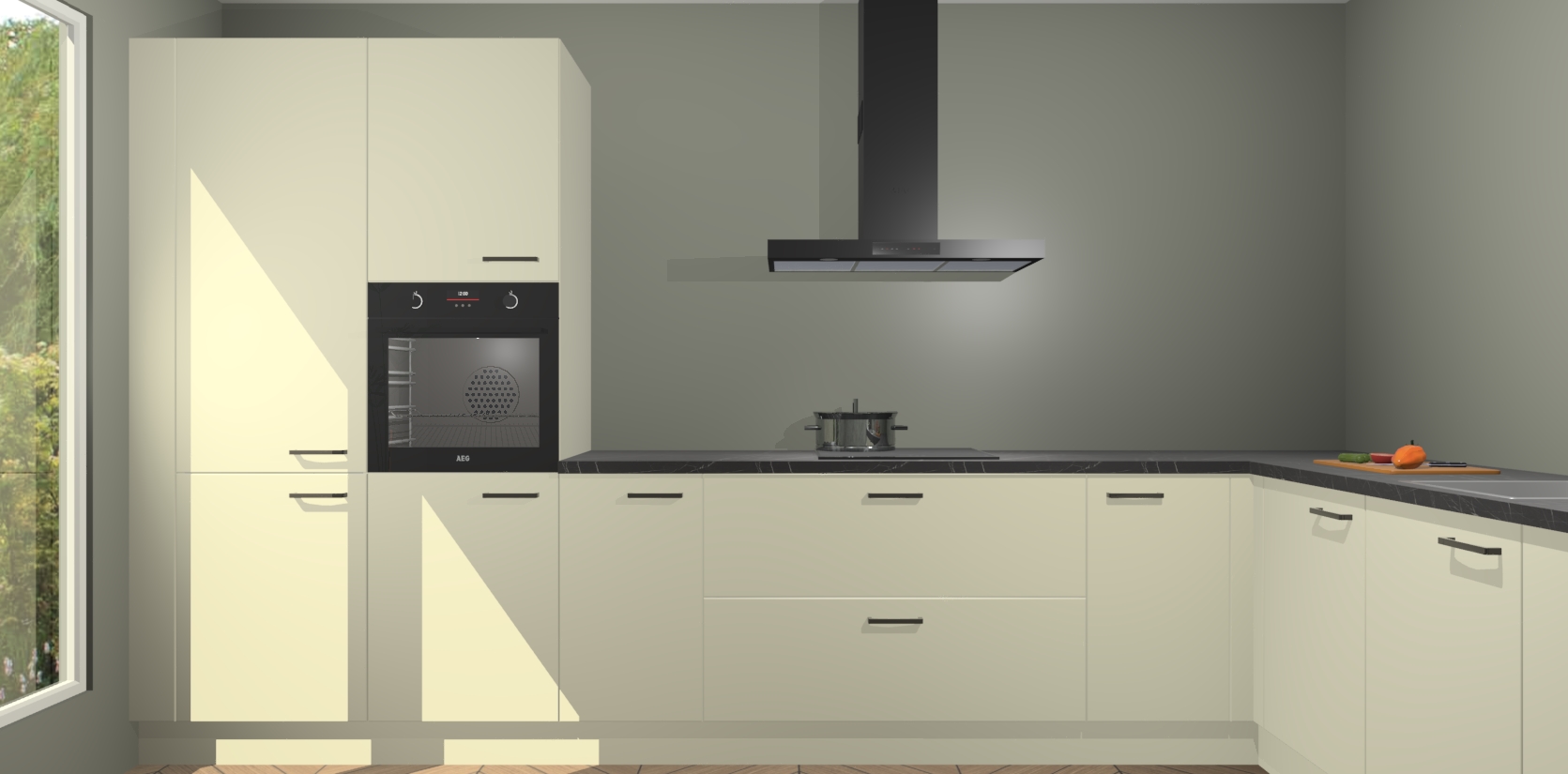 Met een modern, tijdloos design en ruime opslagruimte, zult u zich in no-time thuis voelen in uw nieuwe keuken. Uw leven wordt eenvoudiger met de soft-close deuren die voor het ultieme stille comfort zorgen - geen geluid dat u stoort terwijl u kookt. Ook is de keuken voorzien van 5 ingebouwde apparaten: een oven, inductie kookplaat, afzuigkap, vaatwasser en koelkast. Deze kunnen gemakkelijk na bestelling worden bijgewerkt naar AEG - waardoor uw luxe ervaring compleet is.