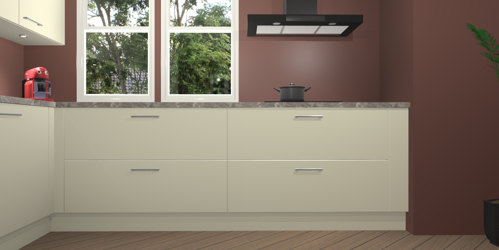 Inclusief plinten, stelpoten en werkblad