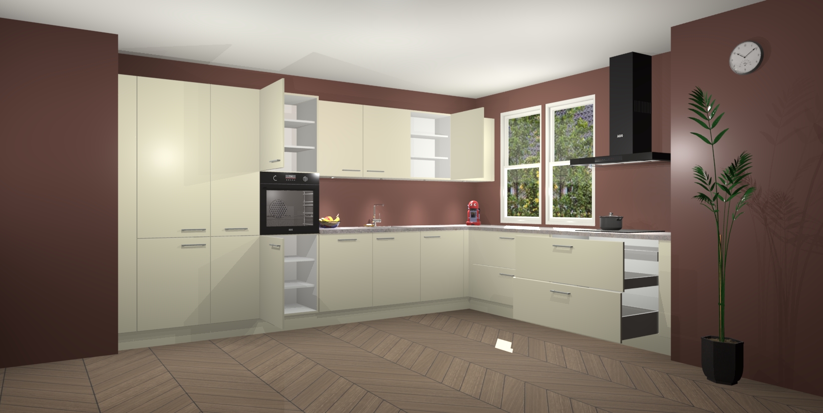 In deze box zijn alle kleuren verzameld van de deuren en werkbladen. Vraag de gratis kleurenbox aan en kijk thuis rustig verder!