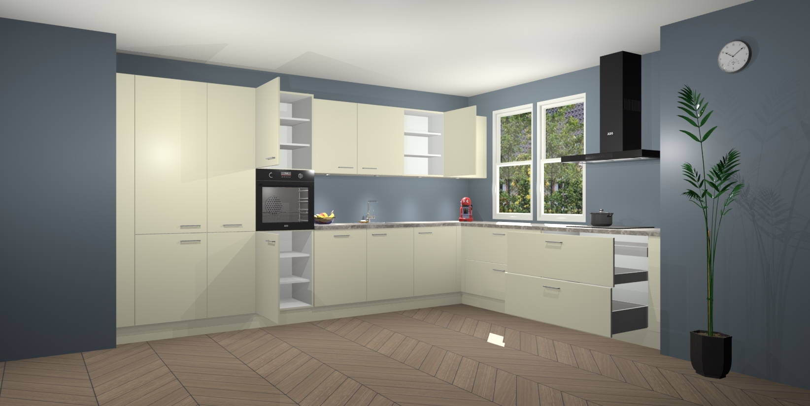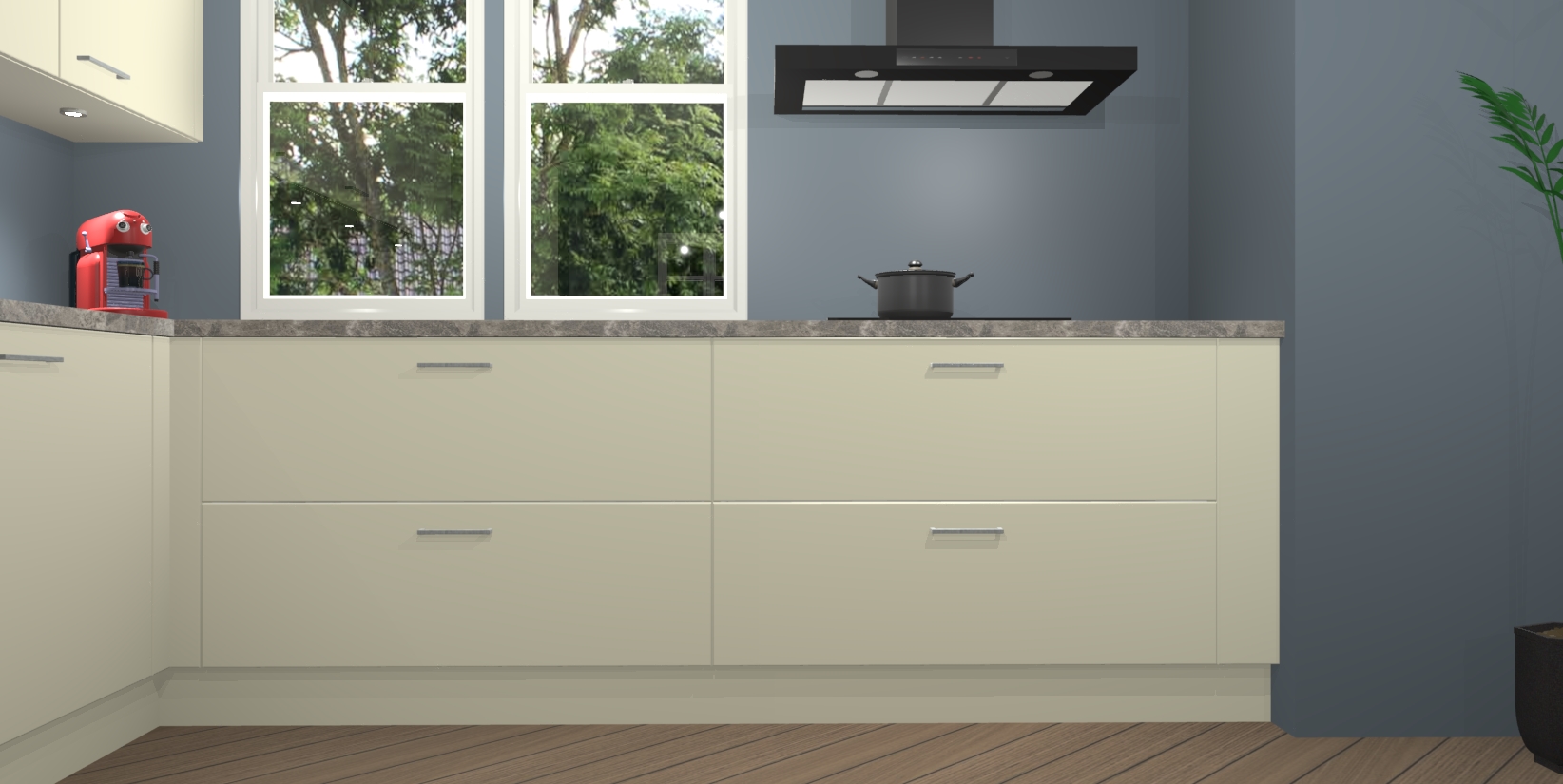 Inclusief plinten, stelpoten en werkblad