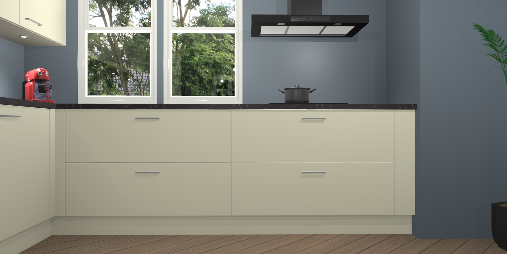 Inclusief plinten, stelpoten en werkblad