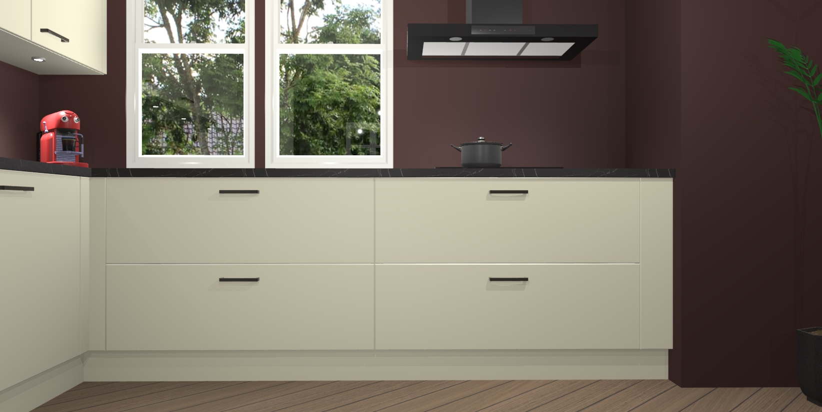 Inclusief plinten, stelpoten en werkblad
