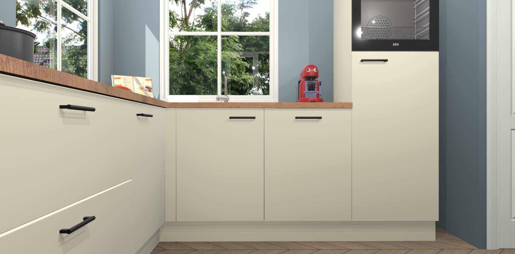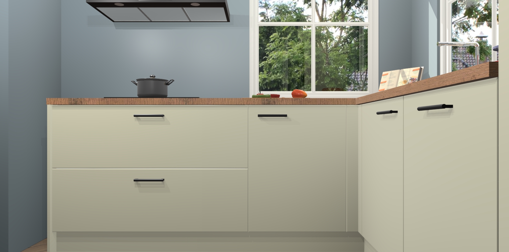 In deze box zijn alle kleuren verzameld van de deuren en werkbladen. Vraag de gratis kleurenbox aan en kijk thuis rustig verder!