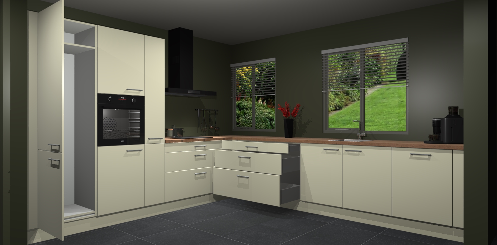 Inclusief plinten, stelpoten en werkblad