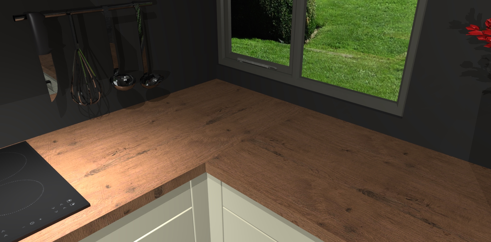 - Bij een hoekwerkblad zijn de hoeken in gevreesd en op maat gemaakt