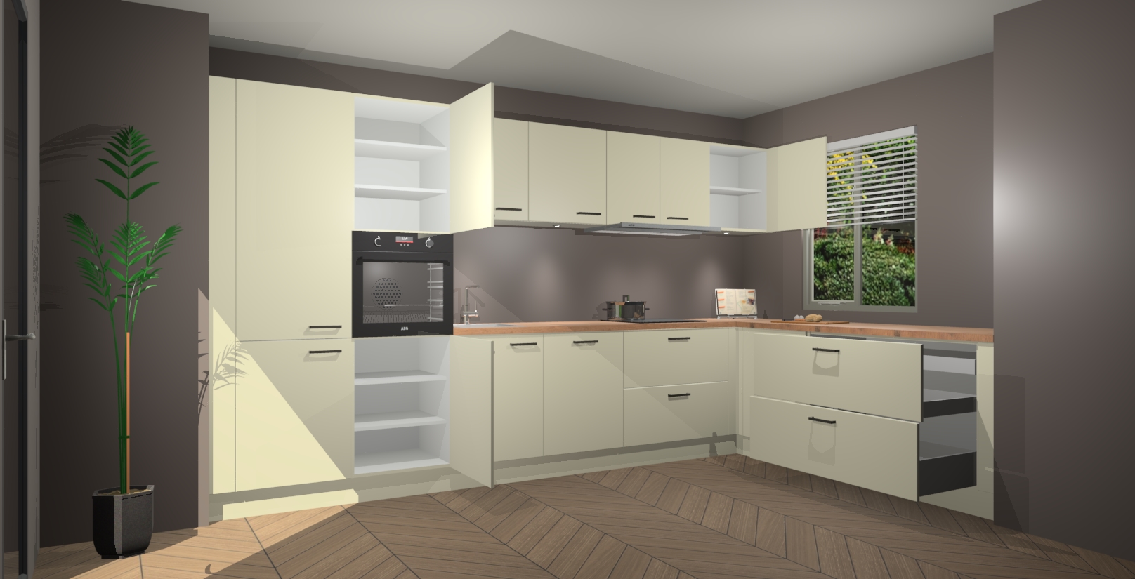 In deze box zijn alle kleuren verzameld van de deuren en werkbladen. Vraag de gratis kleurenbox aan en kijk thuis rustig verder!