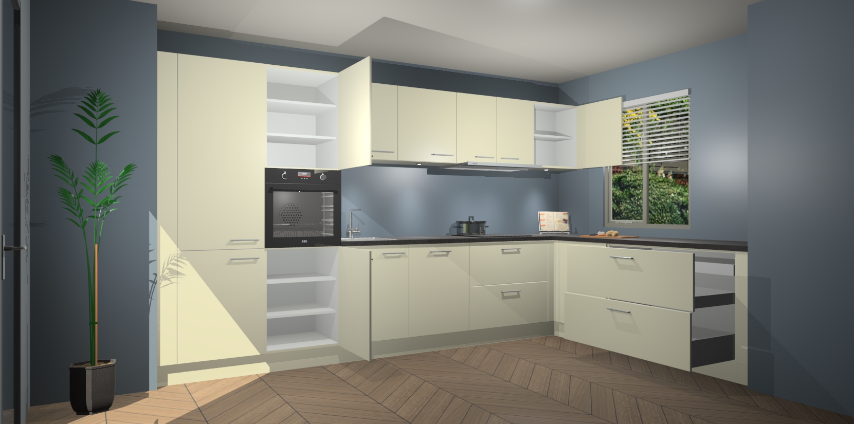 In deze box zijn alle kleuren verzameld van de deuren en werkbladen. Vraag de gratis kleurenbox aan en kijk thuis rustig verder!