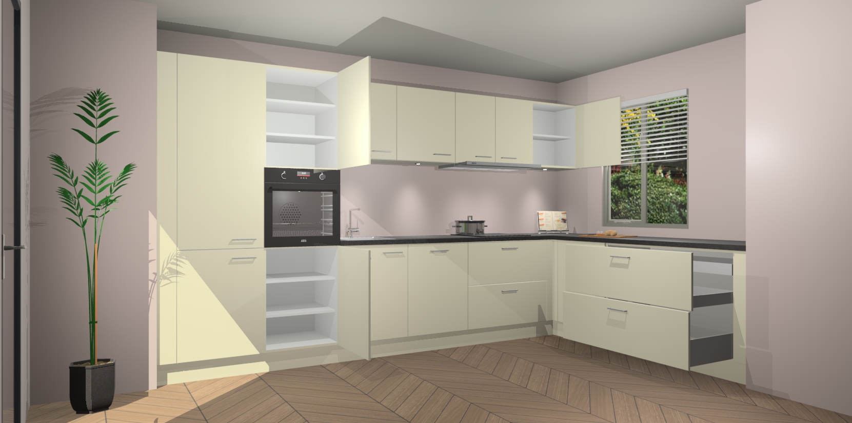 In deze box zijn alle kleuren verzameld van de deuren en werkbladen. Vraag de gratis kleurenbox aan en kijk thuis rustig verder!