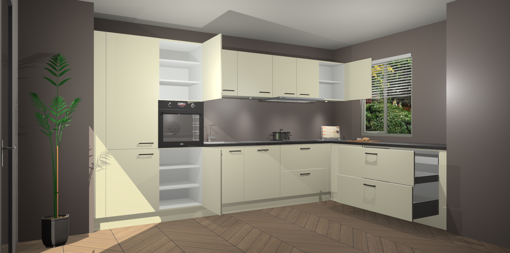 In deze box zijn alle kleuren verzameld van de deuren en werkbladen. Vraag de gratis kleurenbox aan en kijk thuis rustig verder!