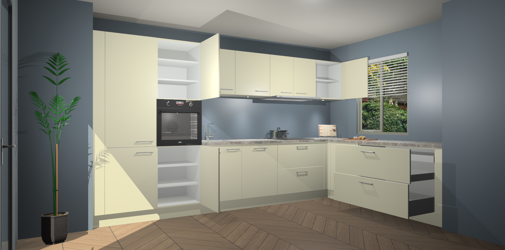 In deze box zijn alle kleuren verzameld van de deuren en werkbladen. Vraag de gratis kleurenbox aan en kijk thuis rustig verder!