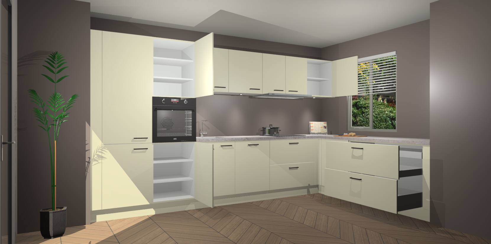 In deze box zijn alle kleuren verzameld van de deuren en werkbladen. Vraag de gratis kleurenbox aan en kijk thuis rustig verder!