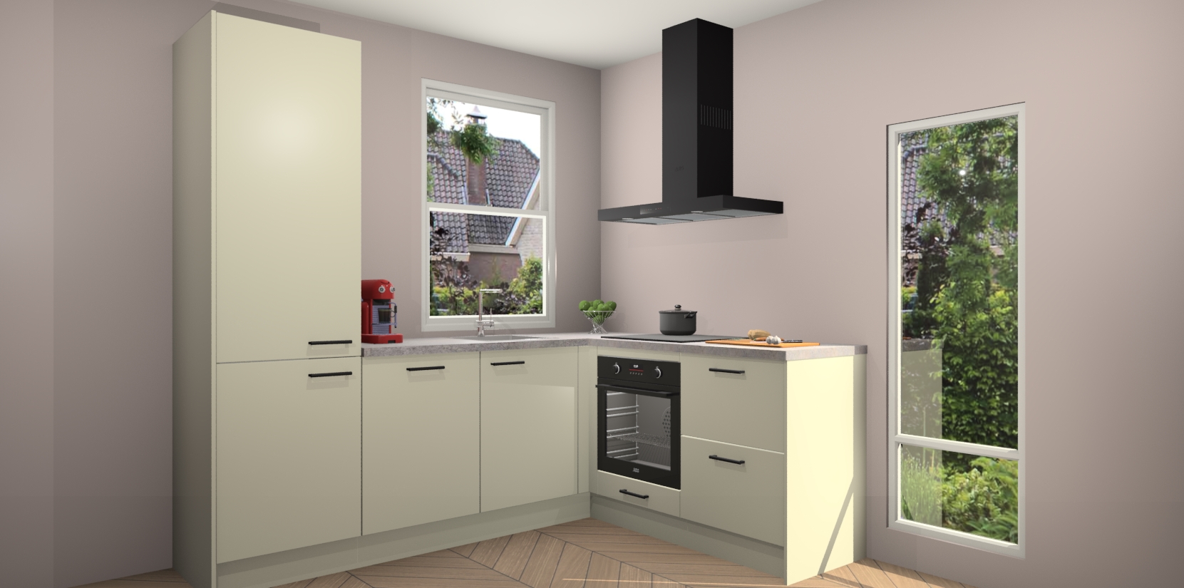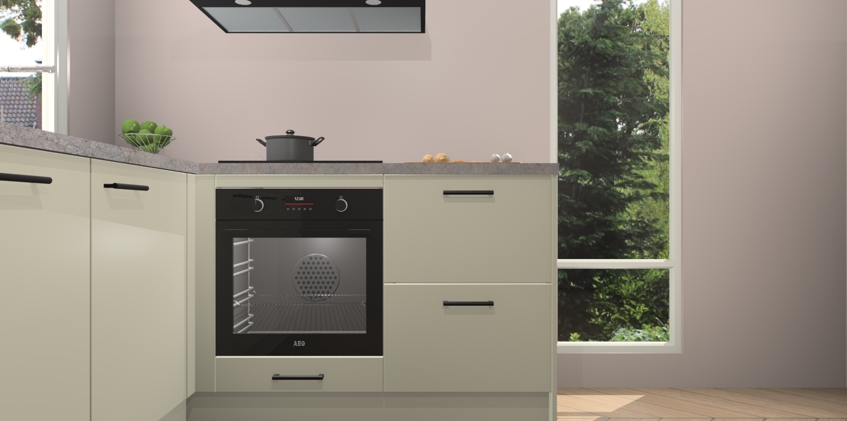 De Magnolia keuken Phuket heeft alles wat u maar kunt wensen. Niet alleen zijn er softclose deuren, maar ook 5 ingebouwde apparaten: een oven, inductiekookplaat, afzuigkap, vaatwasser en koelkast - waarbij u later gemakkelijk naar het AEG merk, van inductiekookplaat naar kookplaat met geïntegreerde afzuiging of van oven naar combimagnetron kunt upgraden. Dat alles tegen een vast laag tarief! Bovendien geeft de Magnolia keuken Phuket supersnelle levering van 7 weken. Echt iets voor u als u er niet op wilt wachten om het resultaat te zien in eigen keuken!