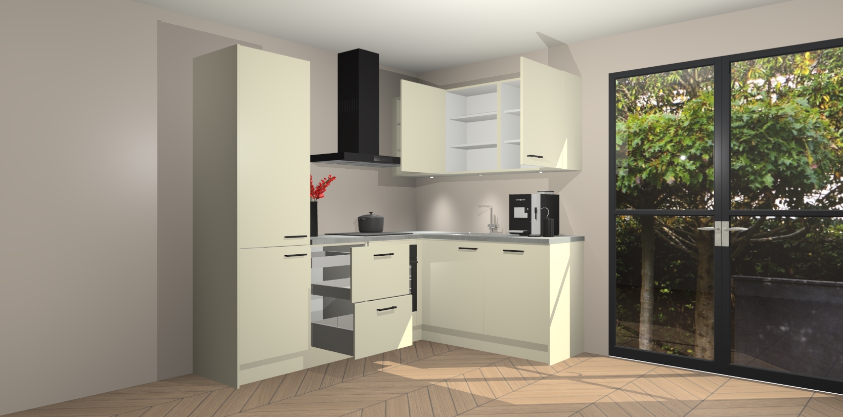 In deze box zijn alle kleuren verzameld van de deuren en werkbladen. Vraag de gratis kleurenbox aan en kijk thuis rustig verder!