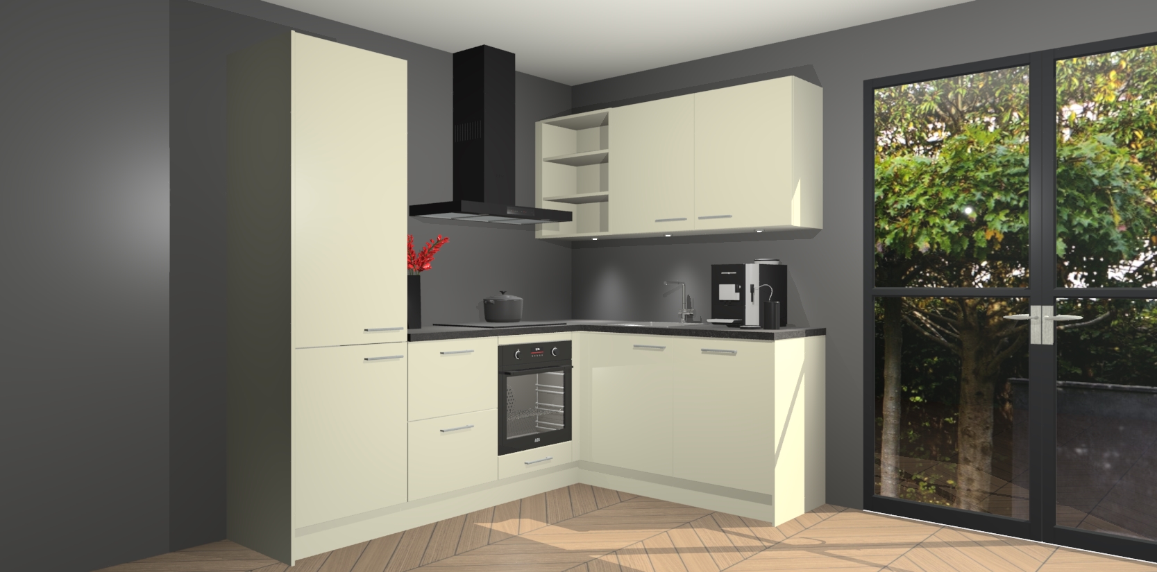 Om dingen nog beter te maken, zijn er allerlei extra's ingebouwd. We hebben 5 ingebouwde apparaten standaard bij deze keuken inbegrepen. Een oven, inductiekookplaat, afzuigkap, vaatwasser en koelkast. Deze kan u upgraden naar AEG na bestelling. Bovendien bent u verzekerd van een laag vast bedrag voor ons alom geliefde product.