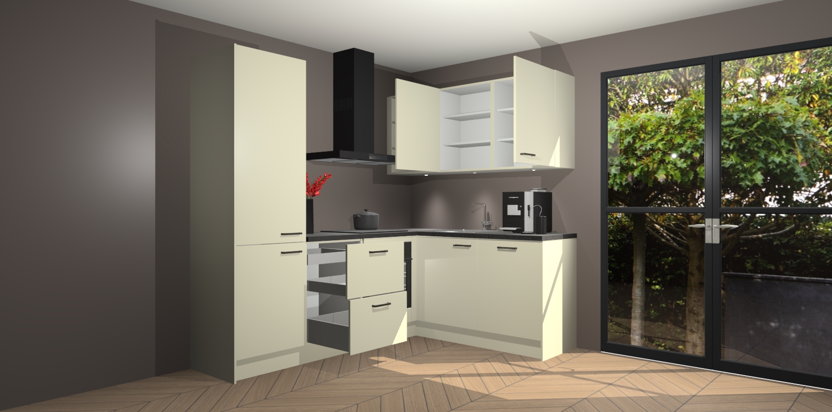In deze box zijn alle kleuren verzameld van de deuren en werkbladen. Vraag de gratis kleurenbox aan en kijk thuis rustig verder!