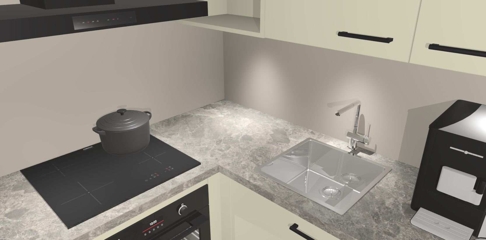 - Uitsparing van kookplaat, spoelbak en kraan dient u zelf te verzorgen.
