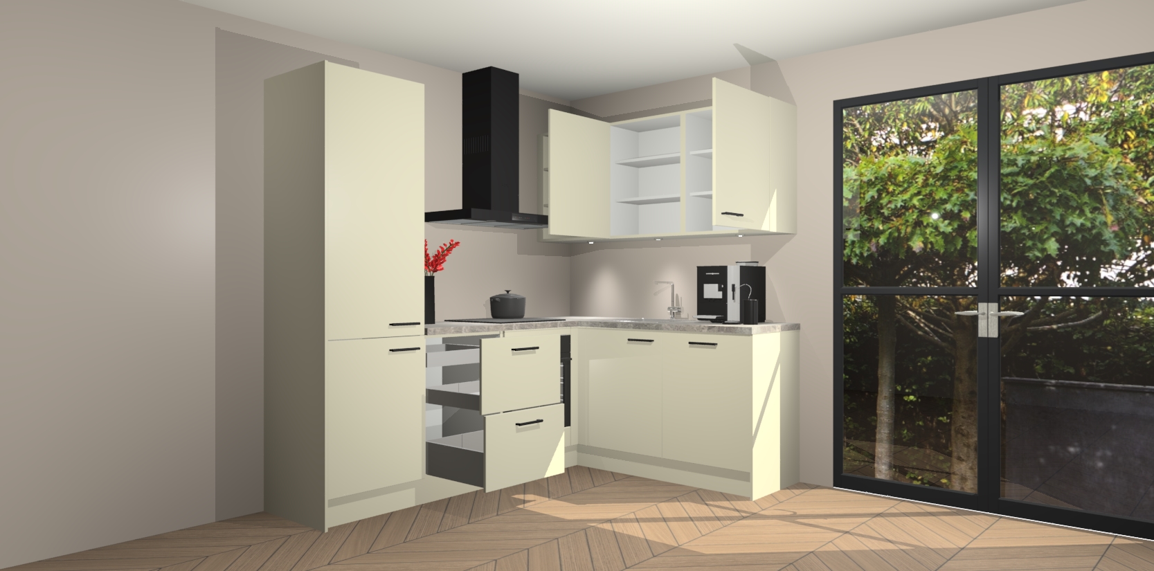 In deze box zijn alle kleuren verzameld van de deuren en werkbladen. Vraag de gratis kleurenbox aan en kijk thuis rustig verder!