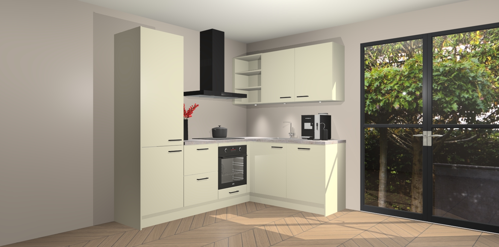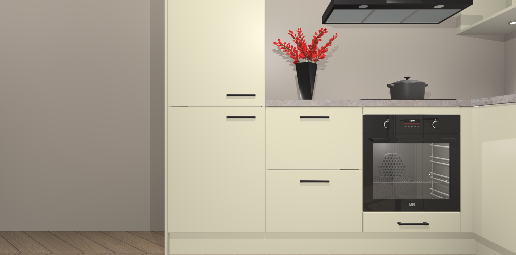 Inclusief plinten, stelpoten en werkblad