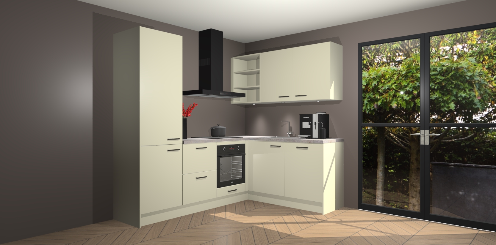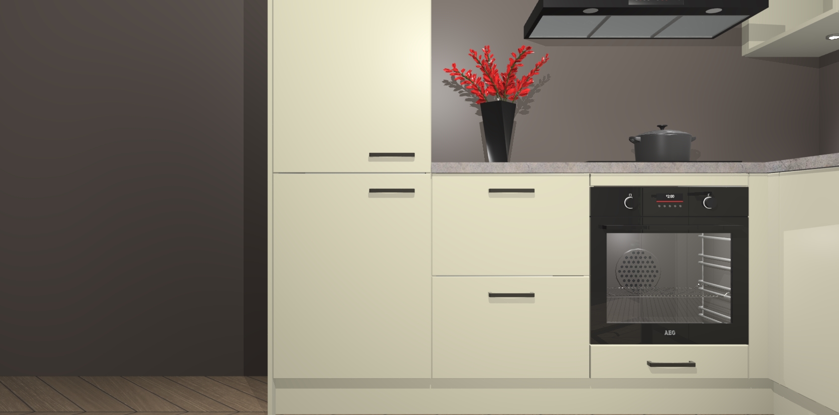 Wauw, dit is de Magnolia keuken Pilsen! U kunt gerust zeggen dat u elegantie combineert met functionaliteit met deze keuken. Met een modern en chique ontwerp is de keuken precies wat u nodig heeft om uw ruimte te verfraaien. De binnenzijde van de kasten is in dezelfde donkere kleur als de buitenzijde voor een uniforme look, compleet met softclose-kasten die stil sluiten.