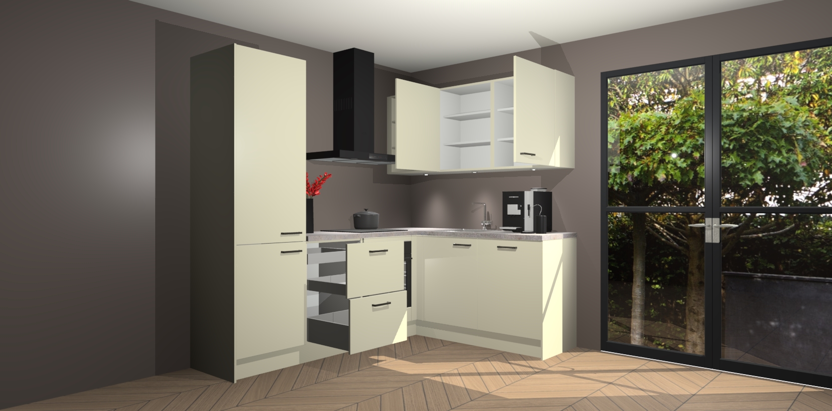 Inclusief plinten, stelpoten en werkblad