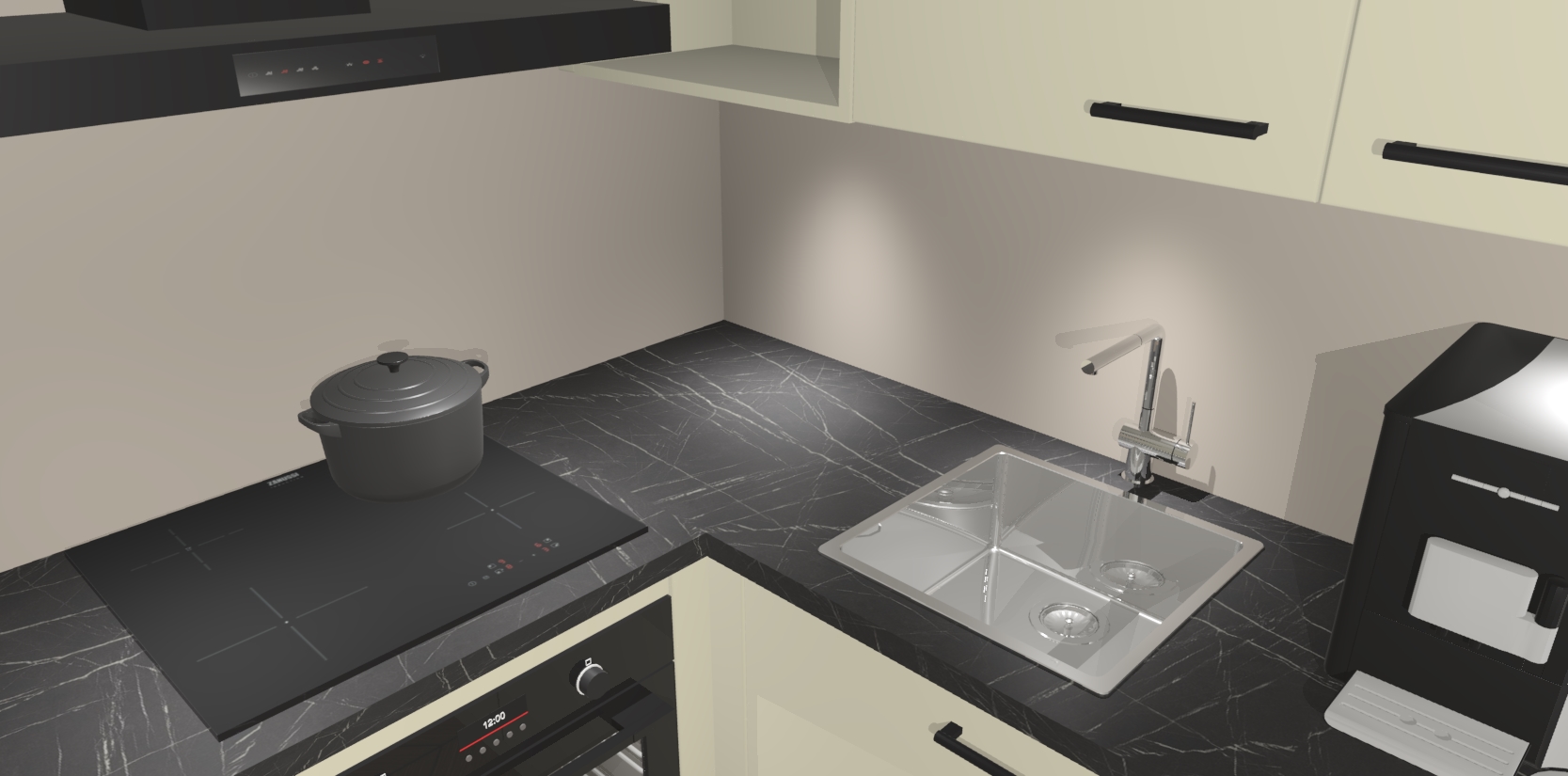 Wauw, dit is de Magnolia keuken Pilsen! U kunt gerust zeggen dat u elegantie combineert met functionaliteit met deze keuken. Met een modern en chique ontwerp is de keuken precies wat u nodig heeft om uw ruimte te verfraaien. De binnenzijde van de kasten is in dezelfde donkere kleur als de buitenzijde voor een uniforme look, compleet met softclose-kasten die stil sluiten.