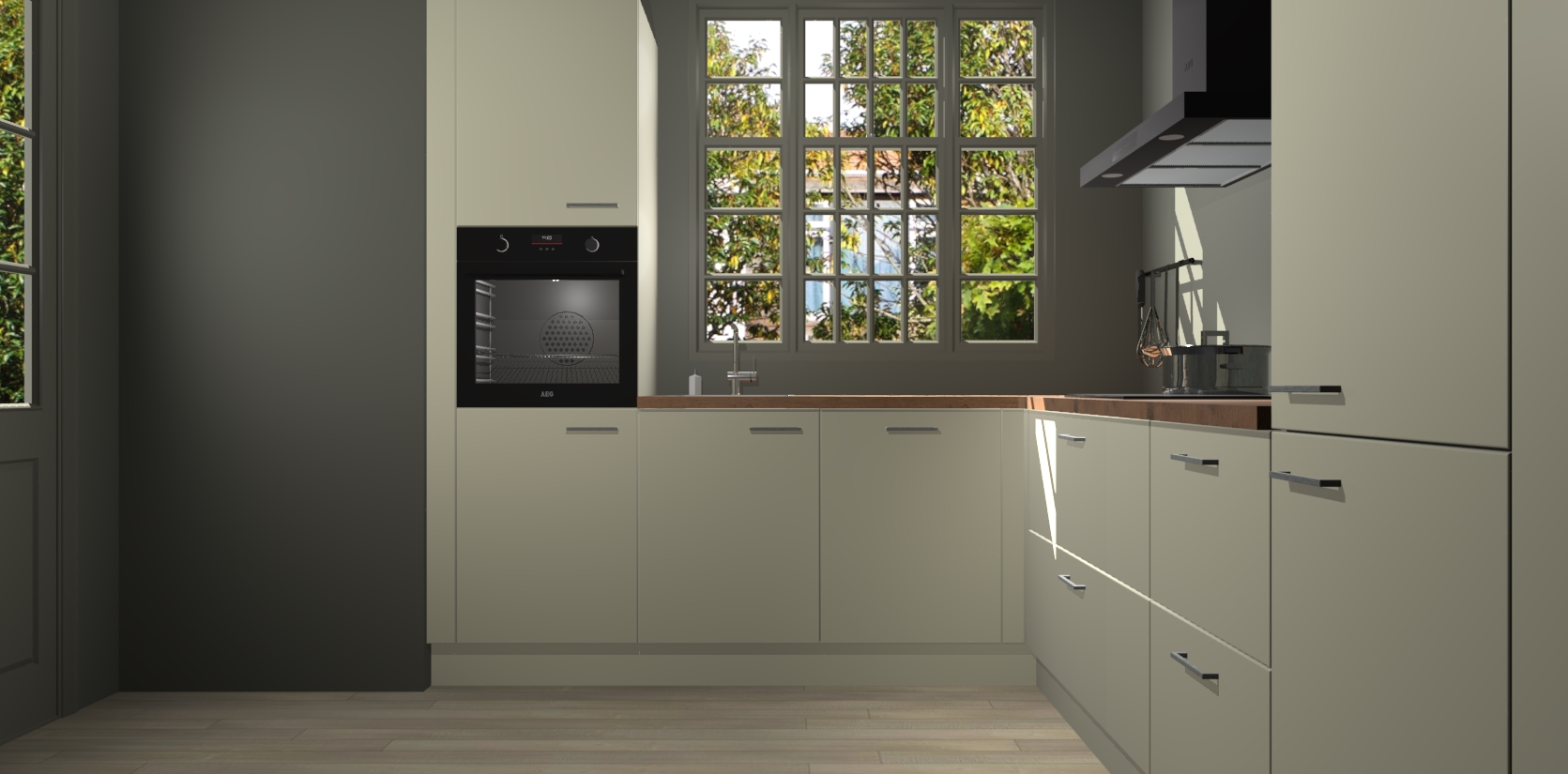 Met een modern, tijdloos design en ruime opslagruimte, zult u zich in no-time thuis voelen in uw nieuwe keuken. Uw leven wordt eenvoudiger met de soft-close deuren die voor het ultieme stille comfort zorgen - geen geluid dat u stoort terwijl u kookt. Ook is de keuken voorzien van 5 ingebouwde apparaten: een oven, inductie kookplaat, afzuigkap, vaatwasser en koelkast. Deze kunnen gemakkelijk na bestelling worden bijgewerkt naar AEG - waardoor uw luxe ervaring compleet is.